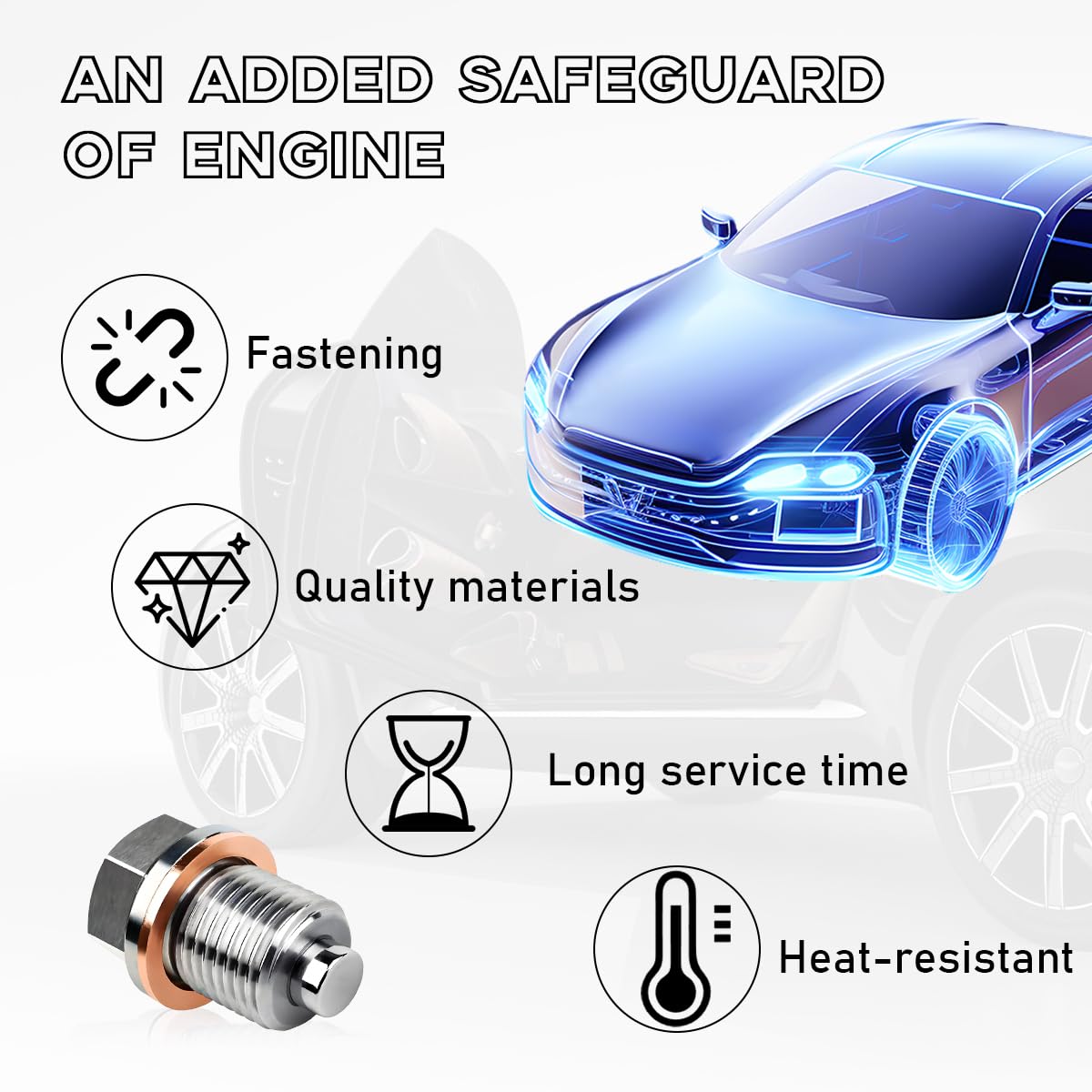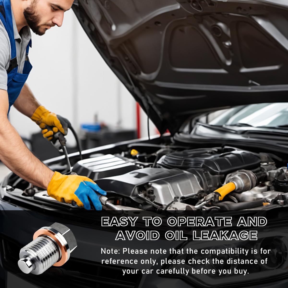 Specification: Material: Aluminum Alloy, Magnet Quantity: 1 PCS Model: M12 1.25/ M12 1.75/ M14 1.5 Color: Silver Weight: 19 g Package Includes: 1 Oil Drain Plug, 5 Copper Gaskets Feature: Sealing, Leakproof, Durable Fit Type: Universal Fit More details about this product: -It prolongs the use of the engine and ensures safe running. -There are five copper washers, sufficient quantity to meet the use and replacement needs. They are also corrosion and rust resistant and will last a long time. -It installs more tightly than plastic or rubber seals.