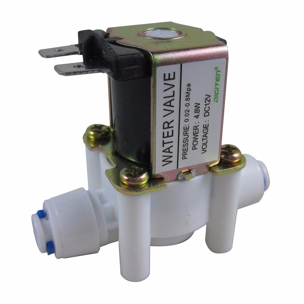 DIGITEN DC 12V 1/4' Inlet Feed Water Solenoid Valve Quick Connect N/C normally Closed