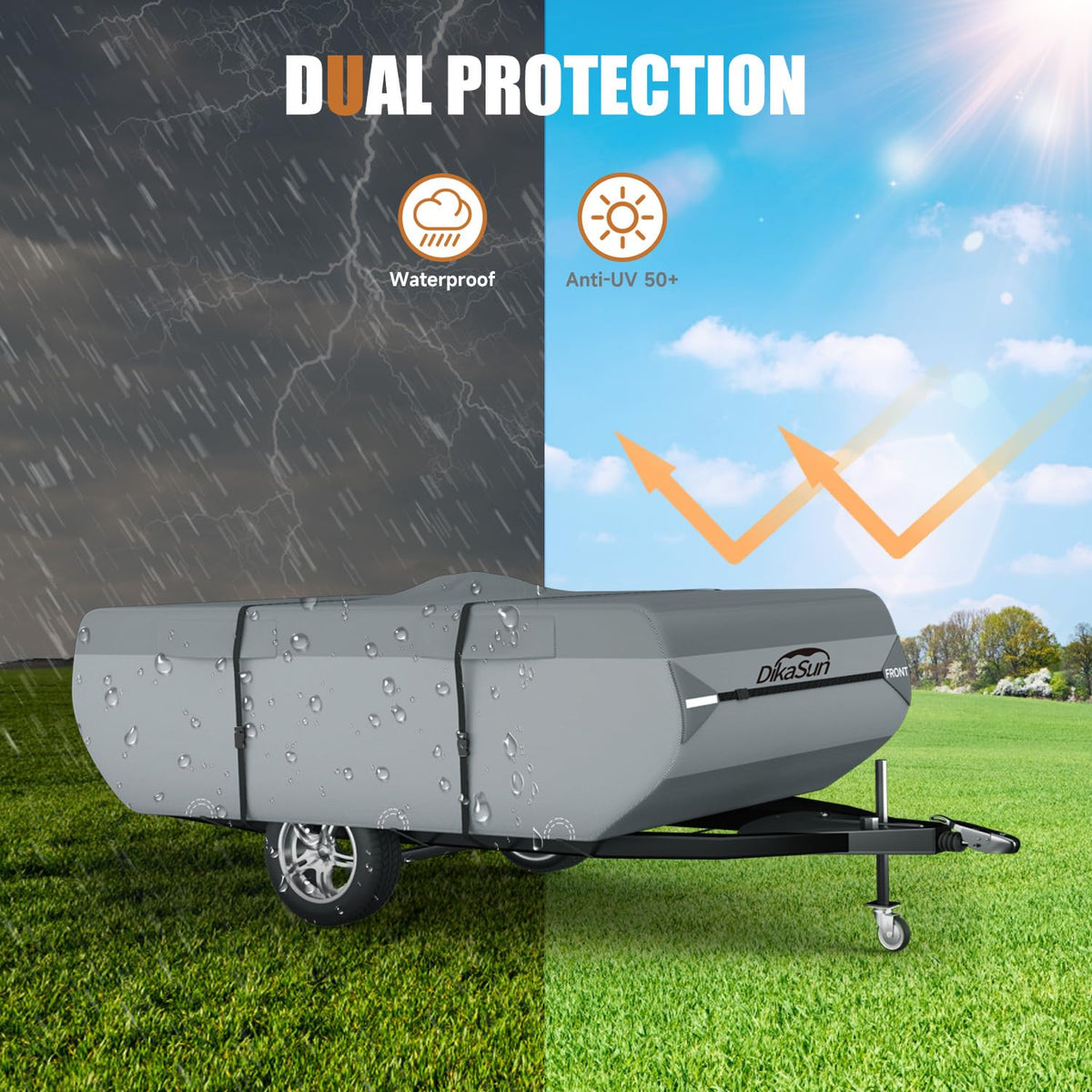 Dikasun Pop Up Camper Cover 14'-16', 7 Layers Waterproof Pop-Up Trailer Cover Anti-Uv Folding Camper Rv Cover For Motor Home