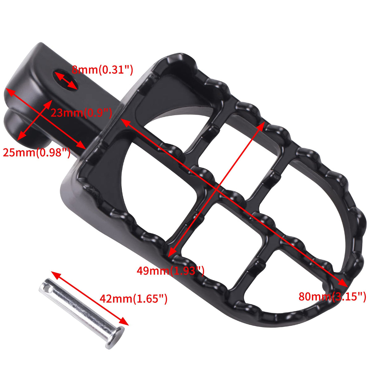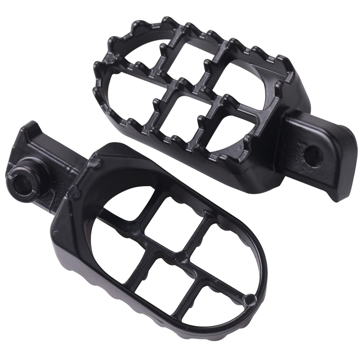 Q: Are these foot pegs suitable for muddy or wet conditions?A: Yes, these foot pegs feature specially designed teeth that significantly increase friction, ensuring that you maintain grip even on muddy or wet roads, allowing for confident riding in various weather conditions.