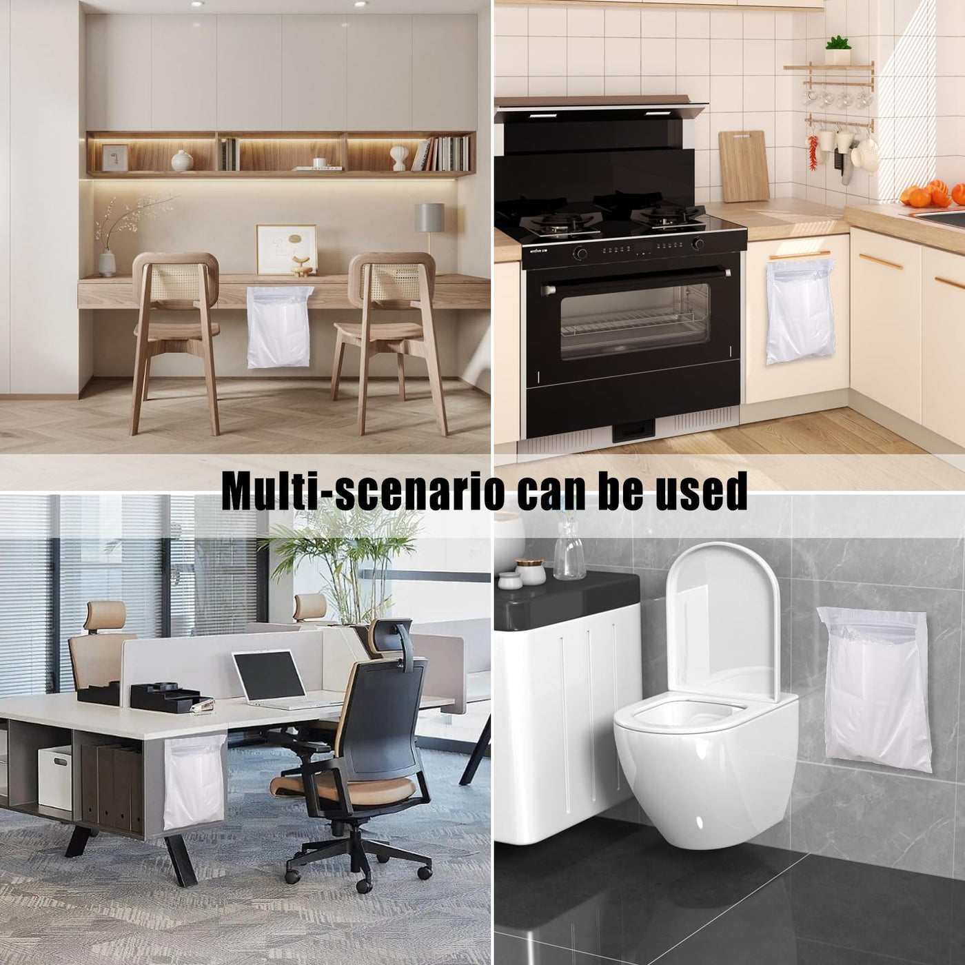 Q: What surfaces can I stick these trash bags to?A: The self-adhesive feature allows these trash bags to stick easily to smooth and flat surfaces, such as car interiors or kitchen cabinets, without leaving any residue upon removal.
