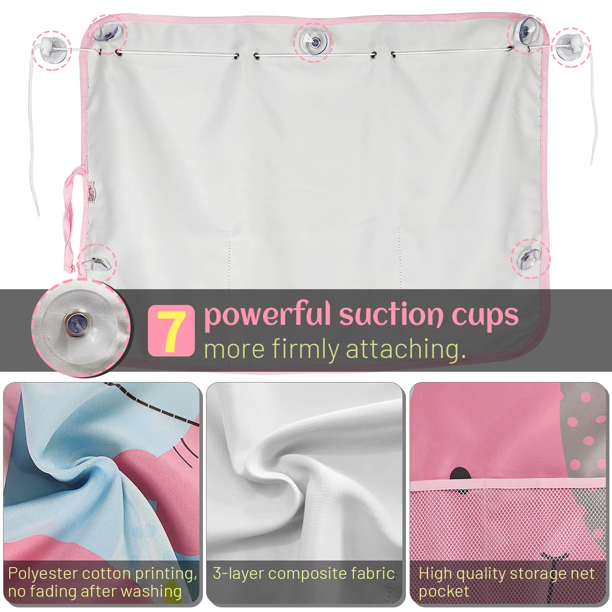 Diza100 Car Sun Shade For Window Baby, 2 Pack Full Shade Window Shades With Storage Net Pocket, 7 Suction Cups, Cute Elephant Fo