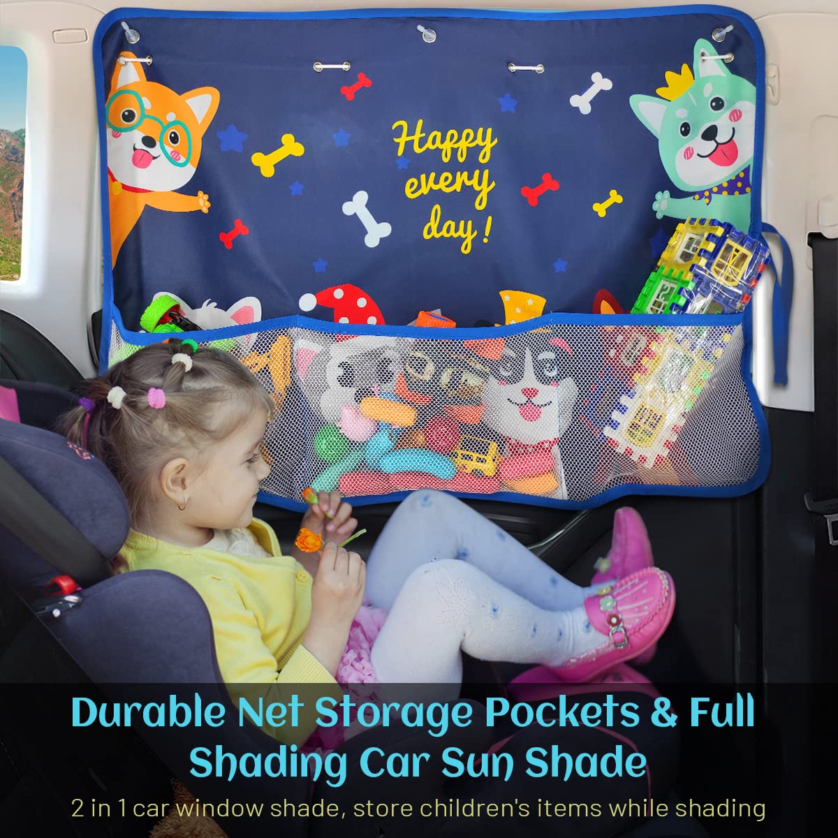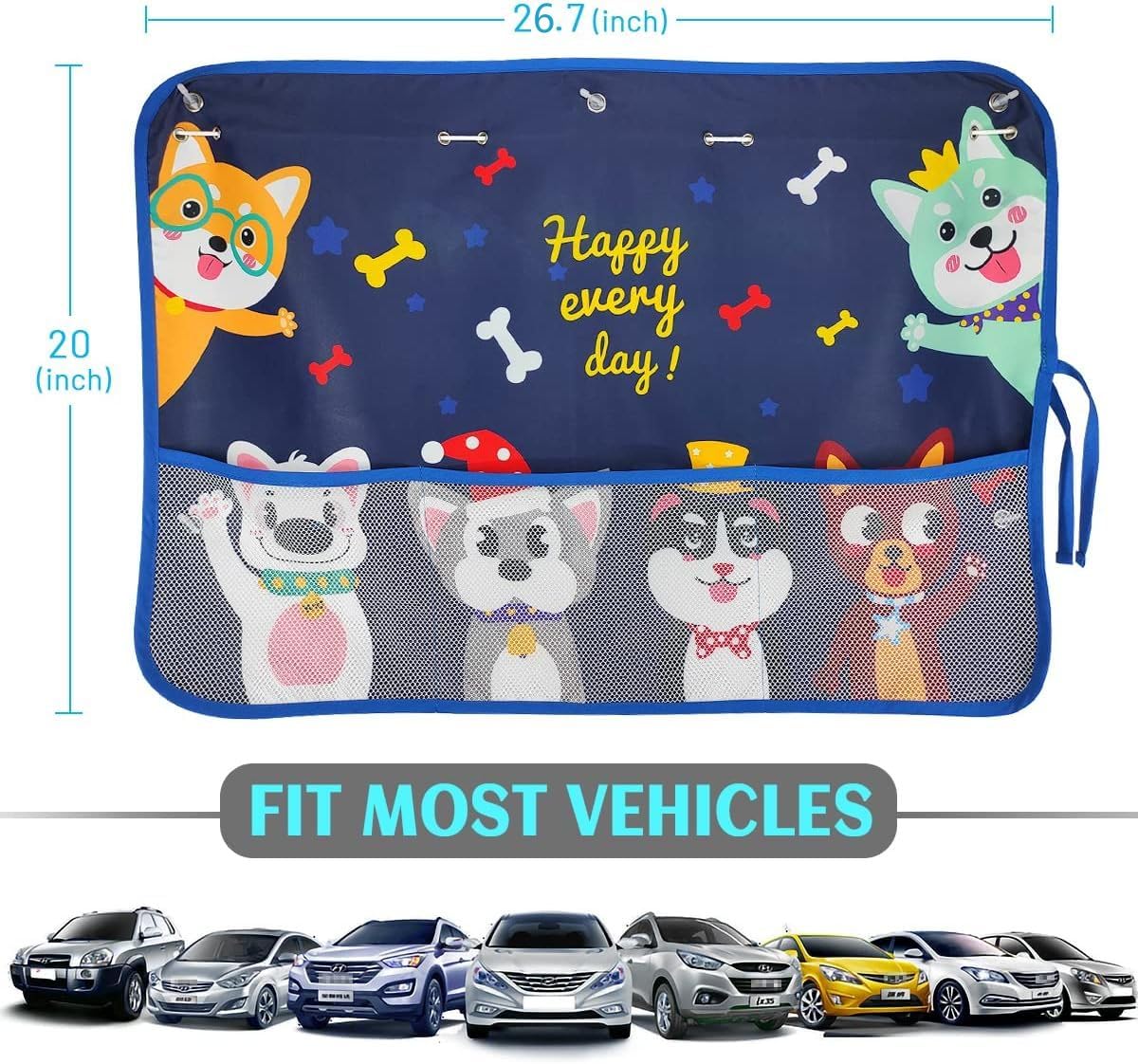 DIZA100 Car Window Shade for Baby(2 Pack), Blackout Car Sun Shades with Storage Pockets 7 Suction Cups Car Window Curtain Cute P