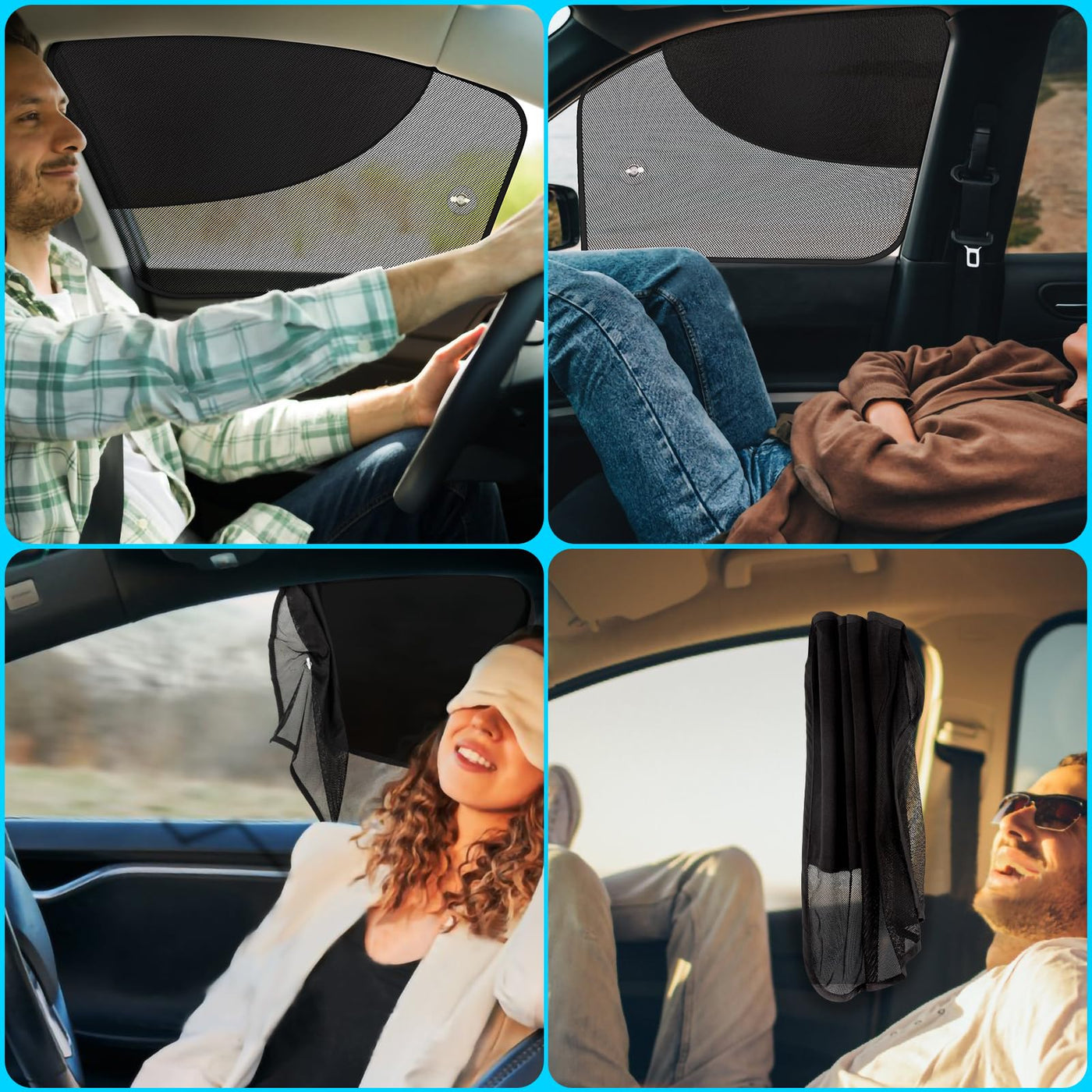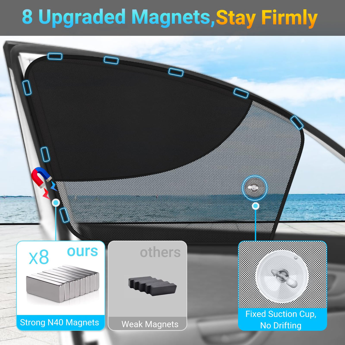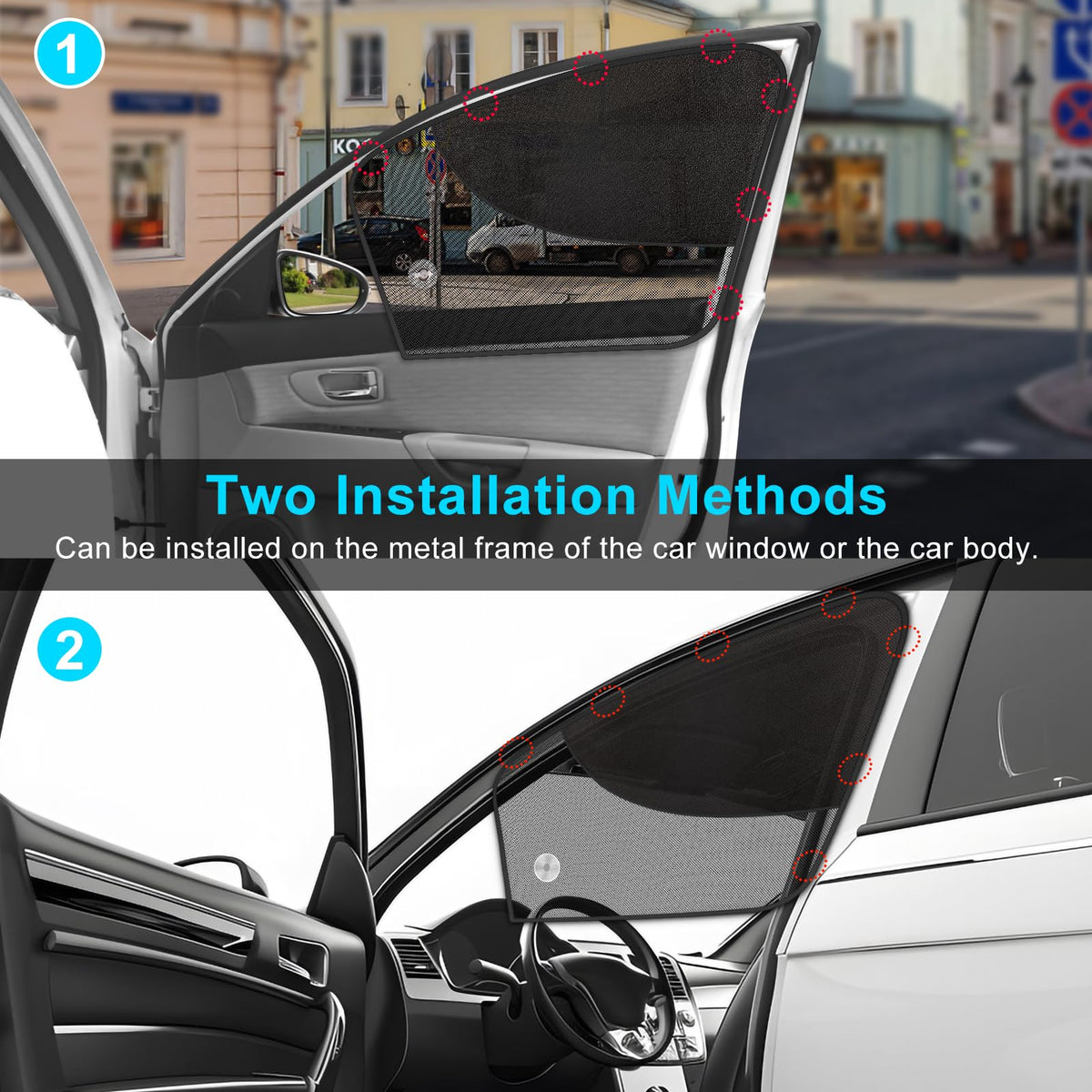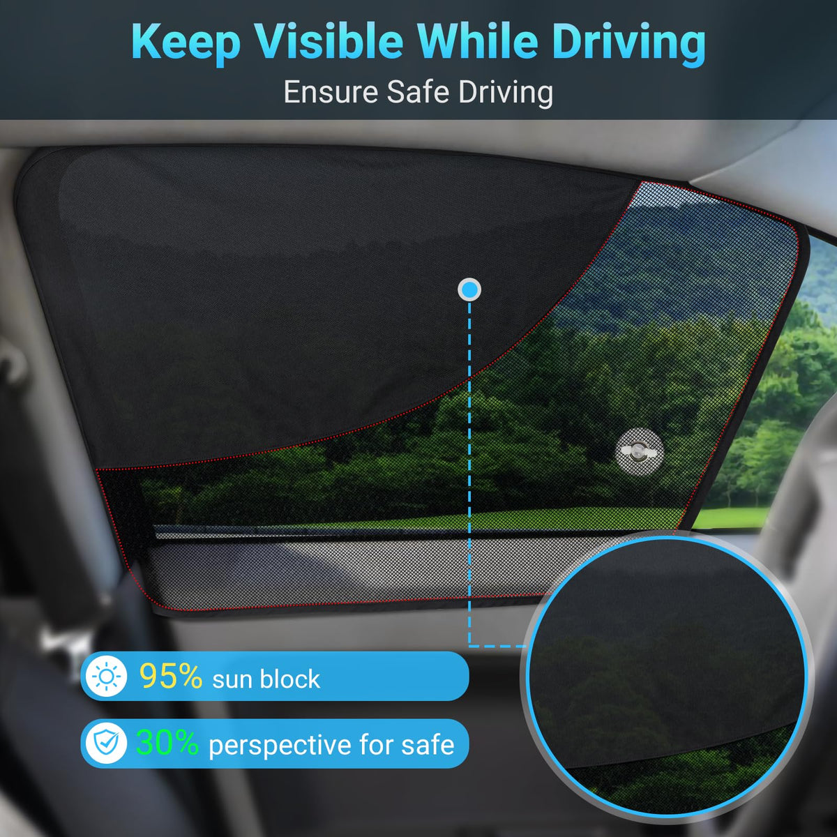 Diza100 Front Window Sun Shade, 2 Pack Half Blackout & Half See-Through Magnetic Car Side Window Sunshades With Fixed Suction Cu