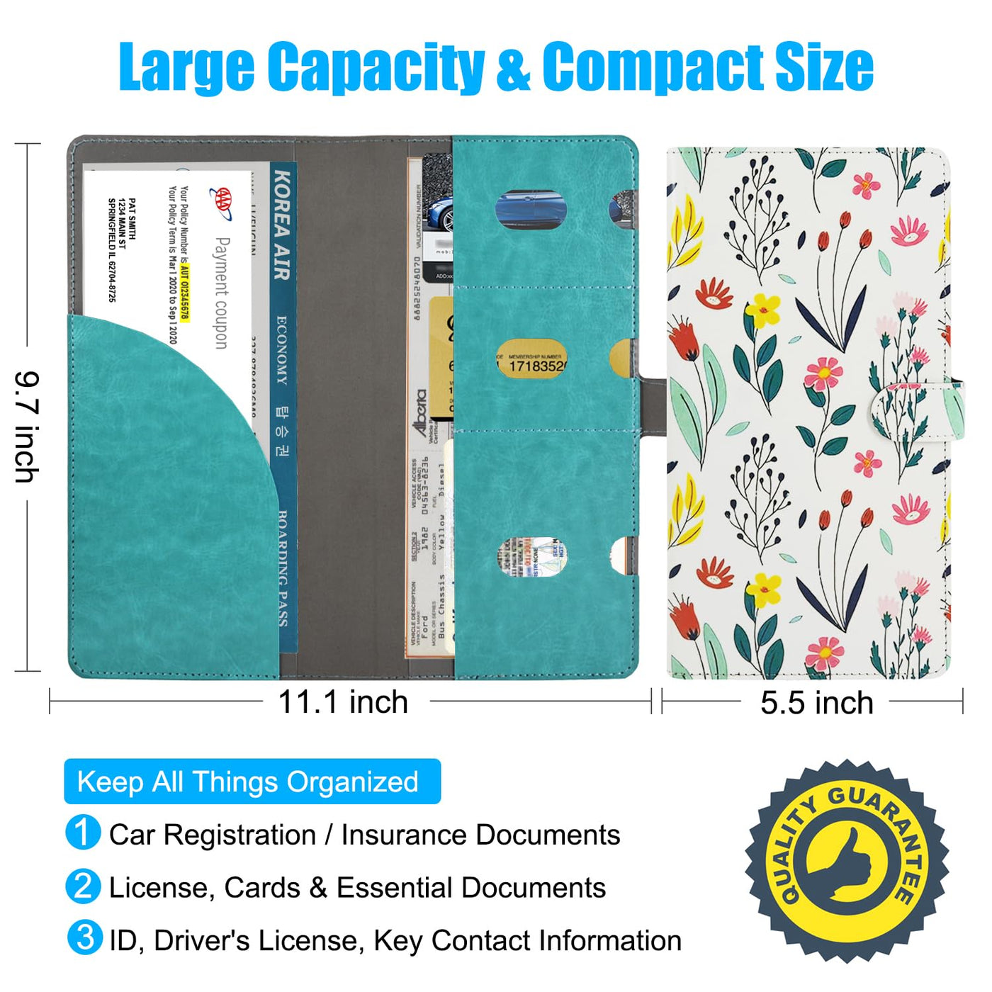 MUST HAVE FOR CAR OWNEROur document case is a must-have for all car enthusiasts.We offer our car document organizer in multiple colors, so you can design the perfect holder to match your personality and style!Crafted with top-quality materials, car insurance and registration holder is one accessory that everyone will notice.This car registration holder for glove box is made from high-quality ECO-friendly PU leather.Auto insurance and registration card holder has a luxurious lookThe car glove box organizer has a clear window so you can easily see all your documents when opening it up! CLEVER DESIGNThis glove box organizer for car is a great way to keep all of your important documents organized.Card holder box has one large pocket for holding car insurance card, two pockets that can hold vehicle registrations cards, three small ones you could use for driver's licenses or other valuable cards.This trailer registration holder is precisely made for drivers who want an accessory that fits all of their needed documents.Our car compartment organizer is just the right size to fit in your car. The dimensions are 5.3in x 9.5in, when opened it measures 10.7in x 9.5in, you can easily hold it with one hand! THOUGHTFUL GIFTThis practical leather document holder is a thoughtful gift that your loved ones will appreciate and use for years!Give the car owner in your life a registration and insurance holder so they can keep it nearby at all times.The stylish essential information organizer comes complete with slots, pockets, and compartments which make organization easy!Make sure to stock up on this eye-catching holder for car registration while supplies last! ? Enjoy our elegant glove box document holder now!
