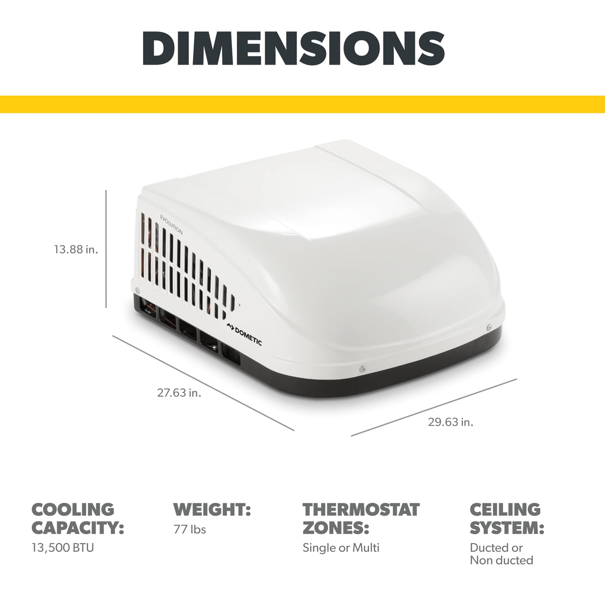 Dometic Brisk Ii | 13.5K Btu Air Conditioner | White | Standard Height | 9105304463 | Ducted Or Non- Ducted | Quiet Ac | Easy In