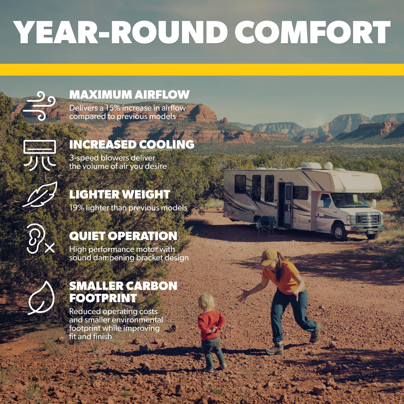 Revolutionary RV A/C Technology. After 2 years of redesigning and reengineering one of the most popular and most imitated RV air conditioners, Dometic presents Brisk II - the stronger, quieter, lighter, smaller and more environmentally friendly RV air conditioner. The Brisk Air II uses its smart design, tighter specification allowances and improved materials to maximize air flow and performance. This newest RV A/C unit offers a 15% air flow increase and is 19% lighter than previous models. The Cooling capacity of this product is (ISO 5151), [W] : 3956.46.
