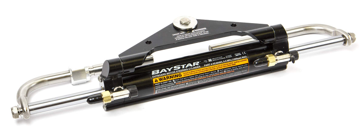 Q: What is the maximum horsepower rating for the Dometic SeaStar Baystar Hydraulic Steering Kit?A: The Dometic SeaStar Baystar Hydraulic Steering Kit is designed for outboard engines with a maximum horsepower rating of 150. It is not recommended for smaller HP outboard engines that utilize wing nut type transom mount clamping screws.