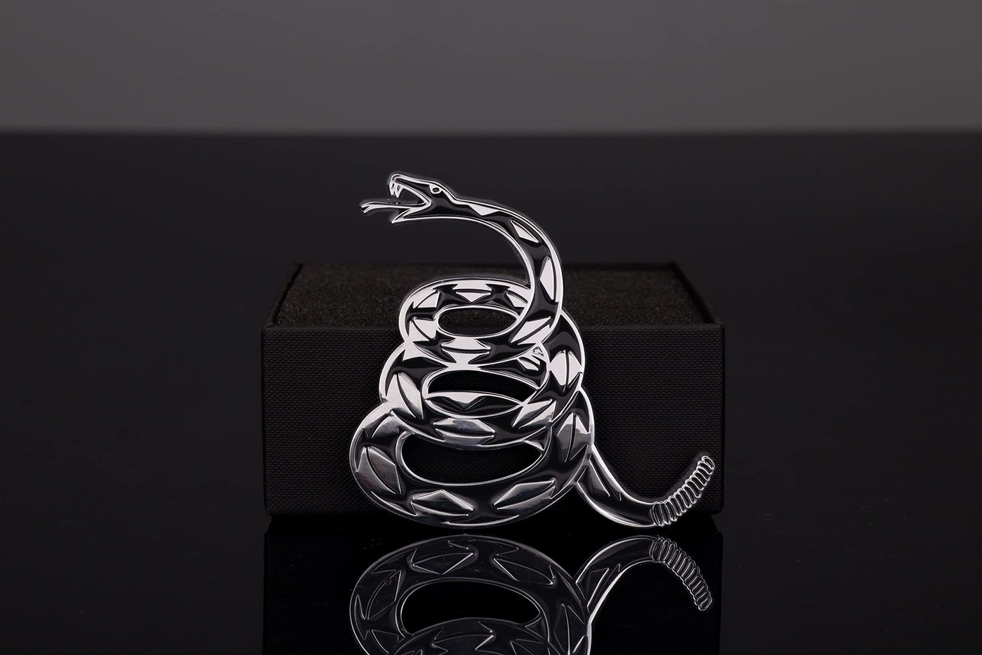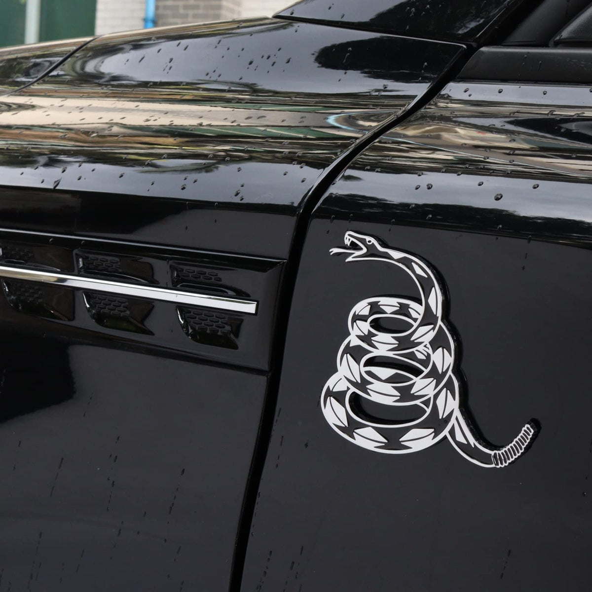 Dont Tread on Me Metal Car Sticker, Gadsden Flag Auto Emblem, 3D Snake Decal for Automotive, Truck, Motorcycle (Silver)