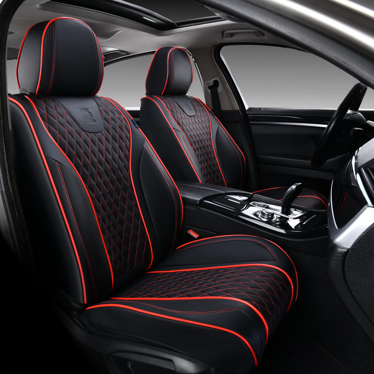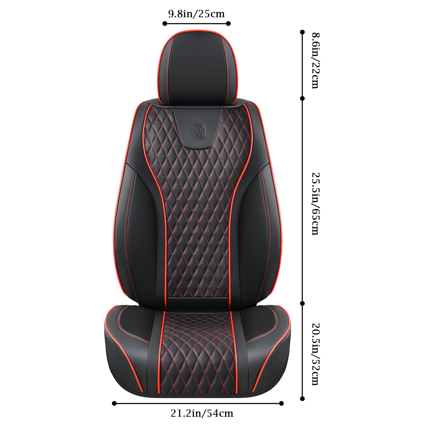 ?SUPERIOR LEATHER?: Luxury leather seat covers are crafted of porous Nappa leather and durable leatherette, the covers are smooth, breathable and gentle to touch. Filled with high-resilient density foam padding, they can boost the comfort level in the cabin of any vehicle. | ?SAFETY & CONVENIENCE?: Doogo seat covers for car with carefully crafted design leaves enough space to be compatible with the airbag, and the seat belt buckle can be exposed. There are two storage pockets on the back of the front seat cover for safe storage of items. | ?PROTECTION & LUXURIOUS?: Our high-quality, automotive seat covers will transform your interior, giving your vehicle a fresh, unique look.The headrest and seat covers are covered fully will keep your car tidy and clean. | ?EASY TO INSTALL& CLEAN?: You can easily install the car seat covers by yourself with the provided installation instruction and video. Just follow the installation instructions, it usually takes 15-25 minutes to complete the installation. It is very convenient to wipe clean easily with just a damp towel. | ?UNIVERSAL FIT?: Waterproof Seat Covers for Cars are universal manufactured to meet most specification of most vehicles,perfectly fix your seat cushion,and will not deform or move for a long time.(NOTE:Please check the Vehicle Fitment Chart before purchasing.)