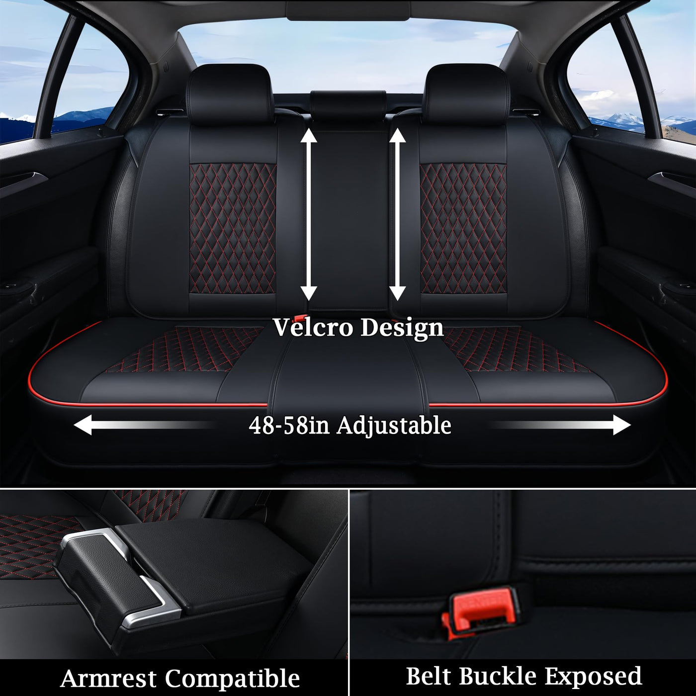 Doogo SeatCovers Full Set, Leather SeatCovers, Waterproof 5 Seats Black and Red Driver SeatCovers, Car Seat Protector Accessorie