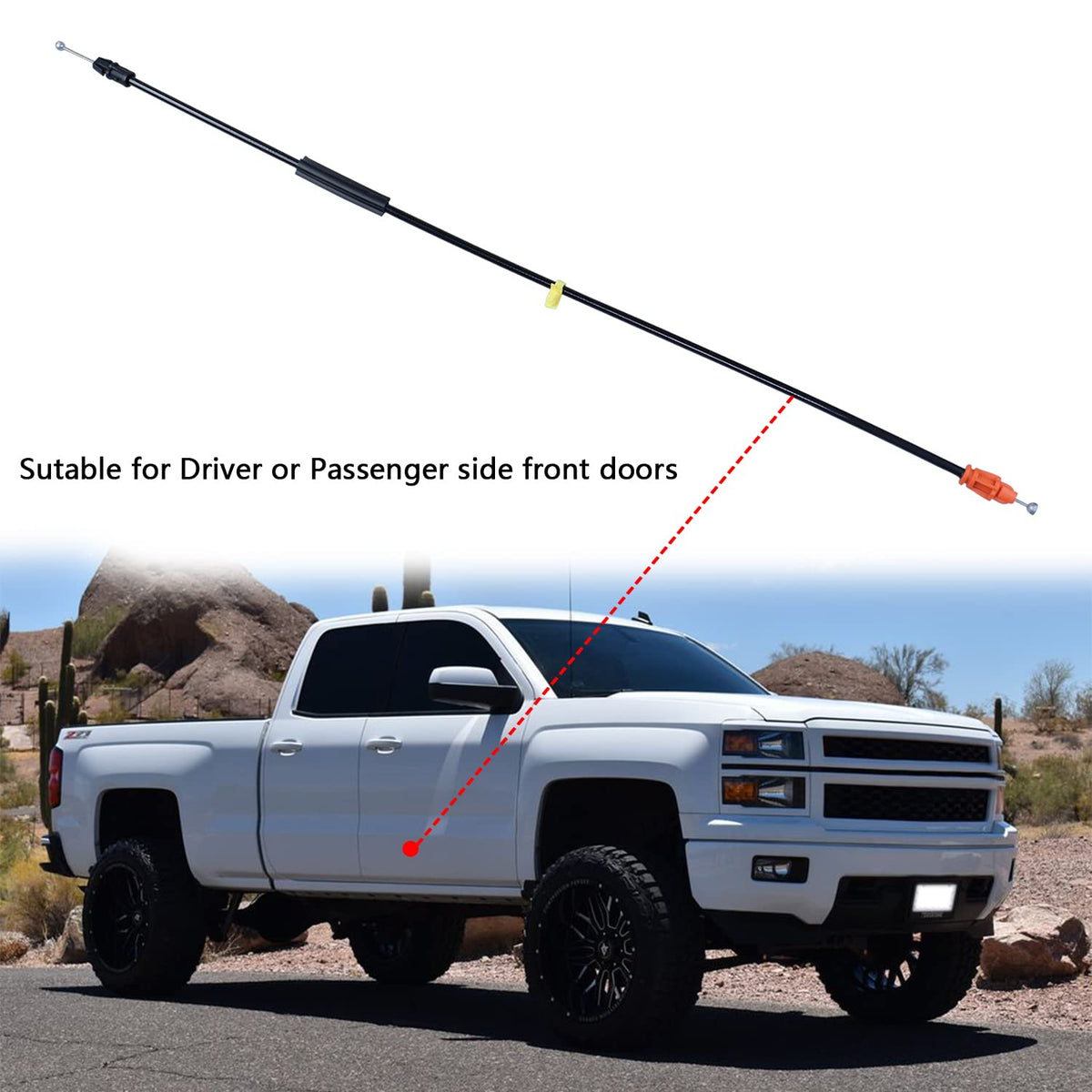 Introducing the HNeekyr Door Latch Release Cable, engineered specifically for Chevrolet and GMC models, ensuring a perfect fit for vehicles like the 2007-2014 Chevy Silverado, Tahoe, GMC Yukon, Sierra, and Escalade equipped with power door locks. This durable and reliable cable measures 25.8 inches in length, making it an essential replacement part for both driver and passenger side front doors.
