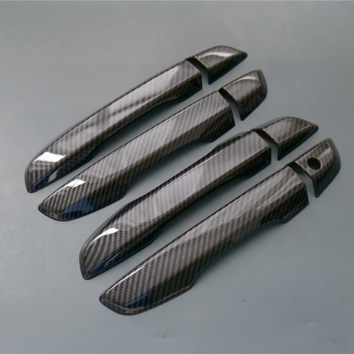 Q: What is the weight of the Door Handle Cover Trim set?A: The complete set of the Door Handle Cover Trim weighs approximately 0.44 pounds, making it lightweight and easy to handle during installation.