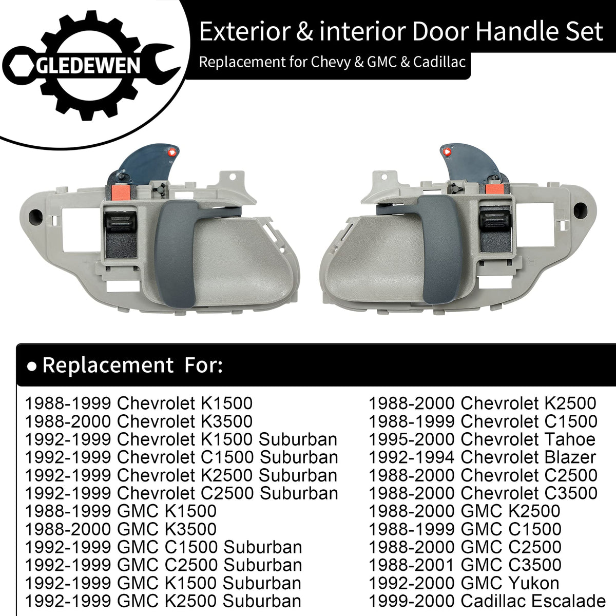 Door Handle Set Metal Exterior & Interior, Compatible with 1988-2001 Chevy K1500 K2500 K3500 C1500 C2500 C3500, GMC C/K 1500 250