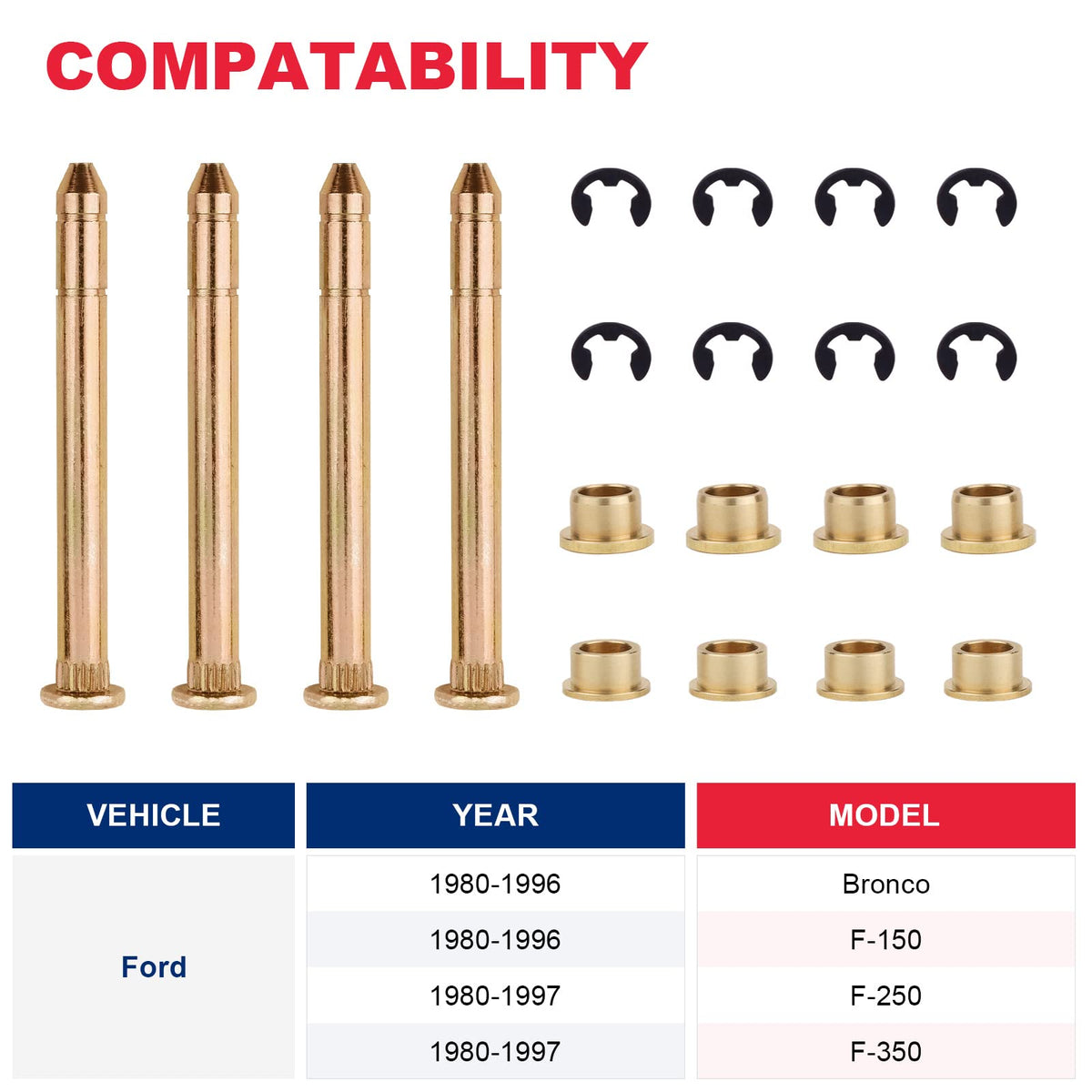 Door Hinge Pin And Bushing Kit Fits For Ford F150 F250 F350 Bronco(2Door - 4Pins,8Bushings And 8Clips)