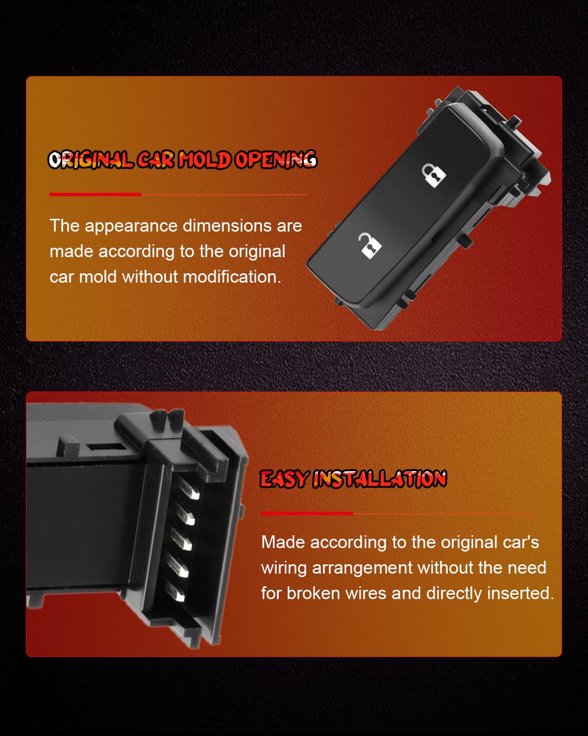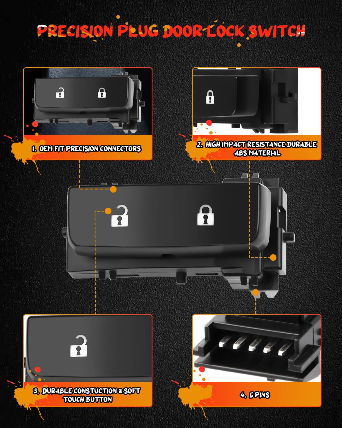 Q: Is this Door Lock Switch easy to install?A: Yes, the Door Lock Switch is designed for easy installation with OEM fit and finish. It takes only a matter of minutes to install and does not require any special tools.