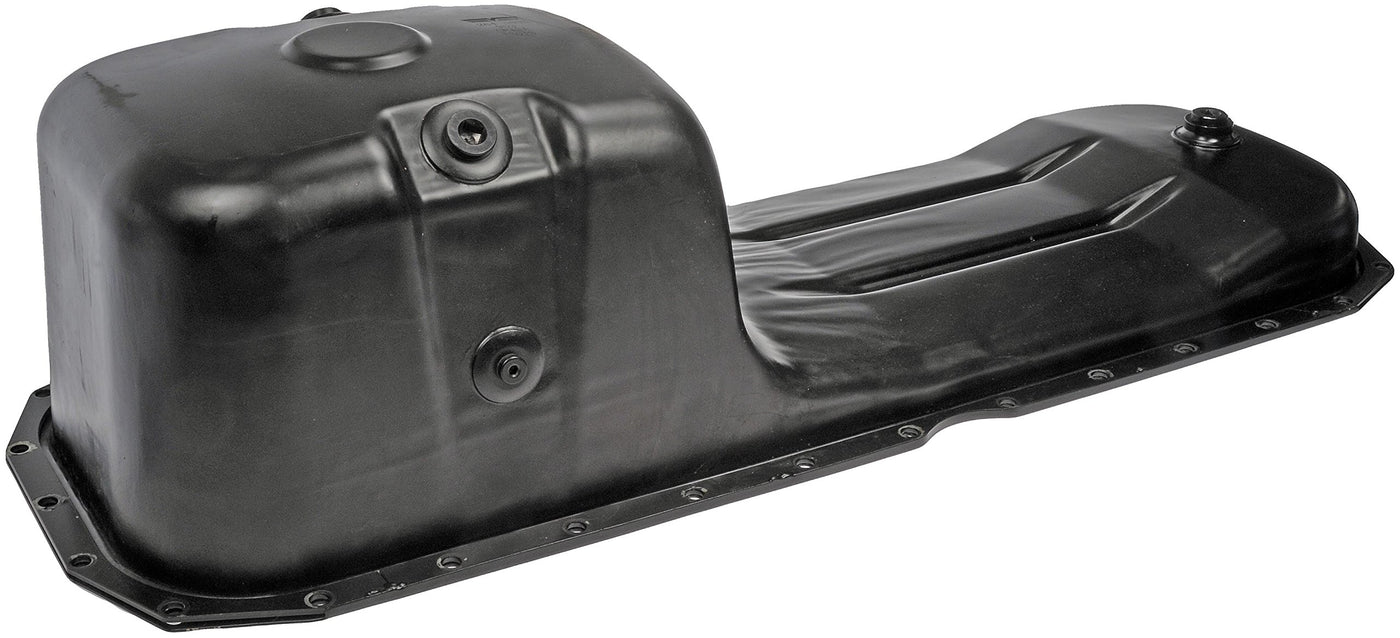 Q: What are the main features of the Dorman engine oil pan?A: The Dorman engine oil pan features a complete assembly that includes the replacement pan and drain plugs. It is precision-engineered for durability with a high-strength coating to prevent future corrosion and ensure long-lasting performance.