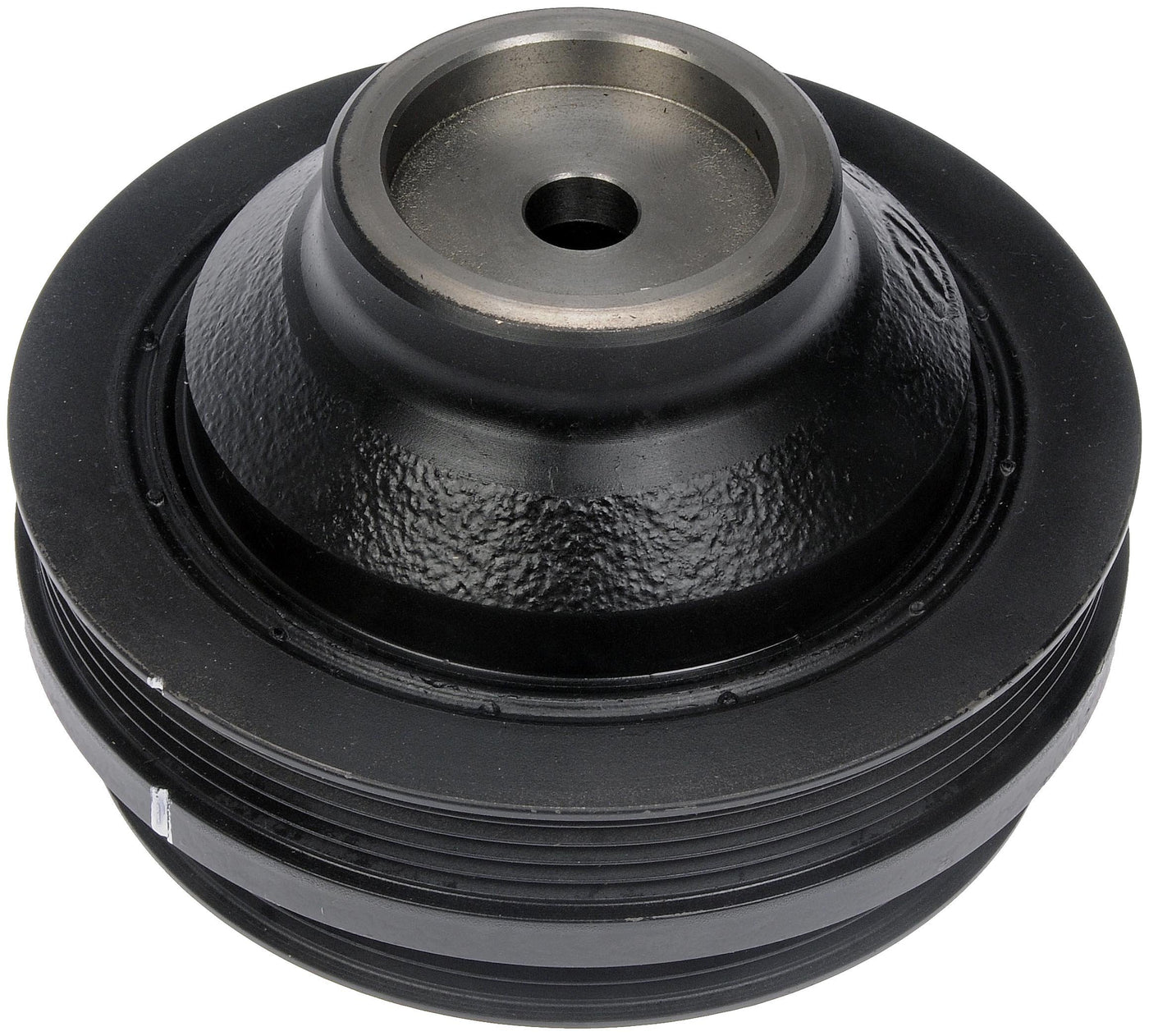 Q: How does the Dorman harmonic balancer ensure durability?A: This harmonic balancer features a stress-resistant rubber bond designed to absorb engine vibrations effectively. It meets stringent standards for tensile and impact strength, which contributes to its durability and longevity.