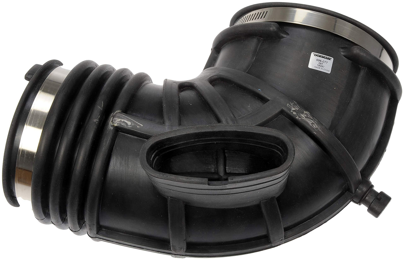 Q: What materials are used in the Dorman 696-077 Engine Air Intake Hose?A: The Dorman 696-077 Engine Air Intake Hose is manufactured from premium materials, ensuring quality construction and a long service life. This means it is built to withstand the rigors of engine performance.