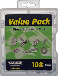 Dorman 799-430 Stove Bolt With Nuts Value Pack- 13 Sku's- 108 Pieces