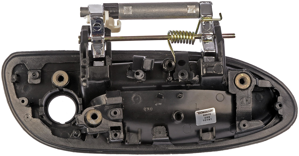 Q: What materials are used in the Dorman 80810 door handle?A: The Dorman 80810 door handle is made from durable plastic, providing a reliable replacement for your original handle. The construction also includes quality components such as hardened steel for the bolt and spring, ensuring long-lasting performance.