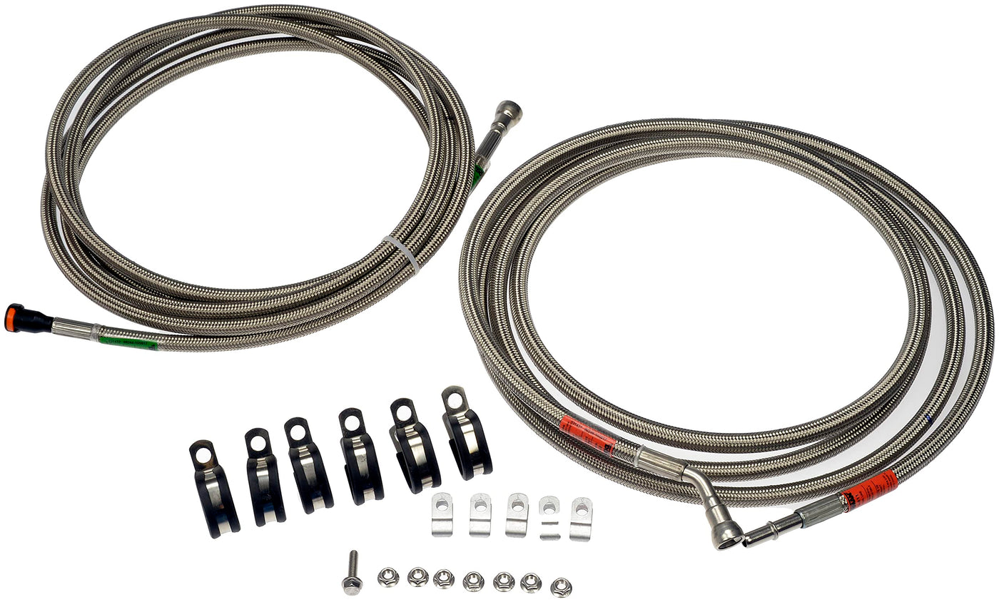 Q: Are these fuel lines resistant to corrosion and wear?A: Yes, the Dorman 819-811 fuel lines are made with high-strength, corrosion-resistant braided stainless steel that protects the PTFE hoses. This ensures reliable longevity and performance under various environmental conditions, making it a trustworthy choice for vehicle maintenance.