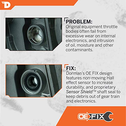 Q: How does the Dorman 977-014 improve reliability compared to other throttle bodies?A: The Dorman 977-014 Electronic Throttle Body is designed with a non-moving Hall effect sensor and a protective shaft seal, which helps prevent liquid intrusion and excessive wear on internal electronics. This innovative design, combined with 100% new construction and rigorous testing, enhances its reliability compared to remanufactured alternatives.
