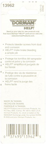 Q: What are Dorman Help! 13962 Brake Bleeder Caps used for?A: Dorman Help! 13962 Brake Bleeder Caps are designed to protect brake bleeder screws from dirt and corrosion, ensuring that they remain functional and free from rust that can cause seizing.