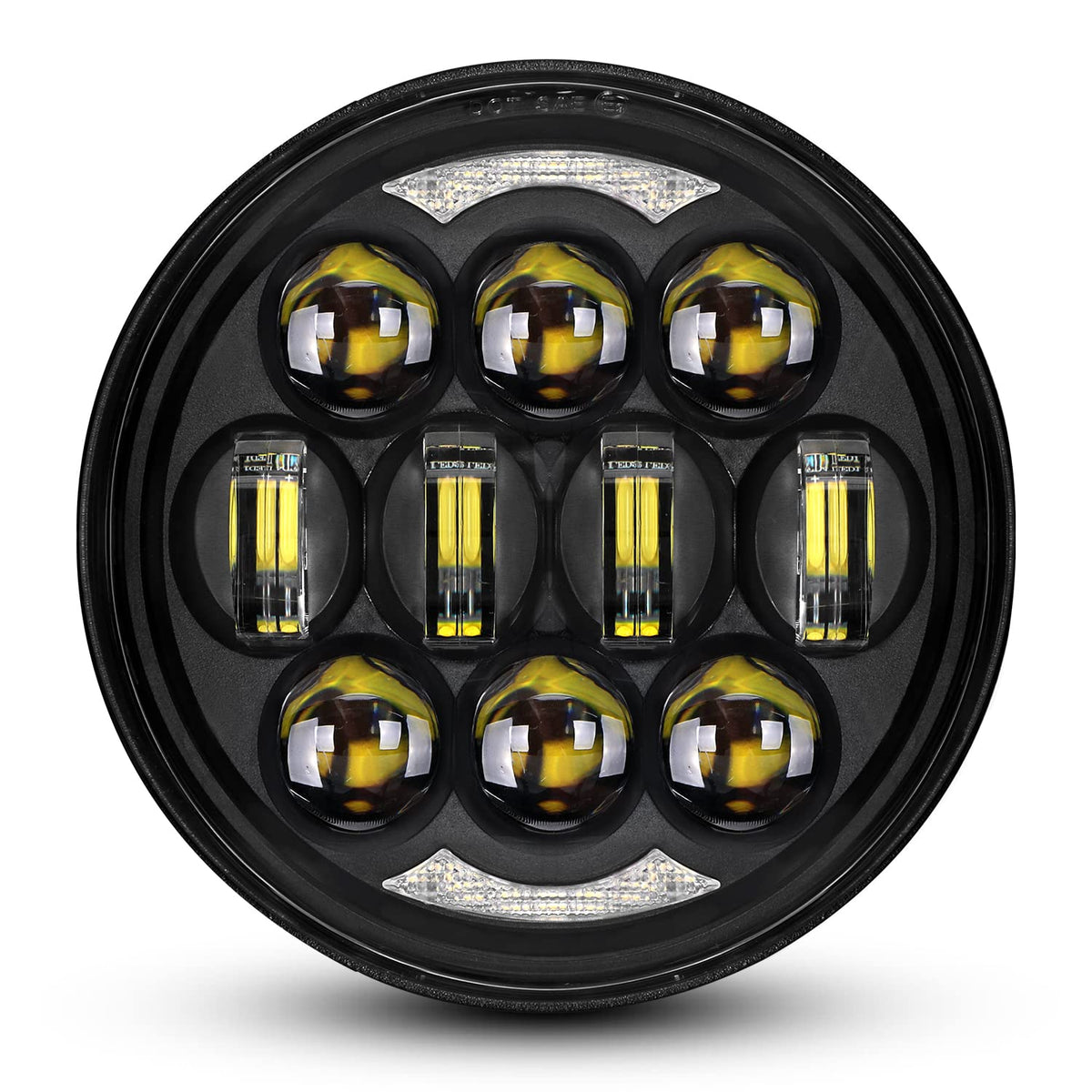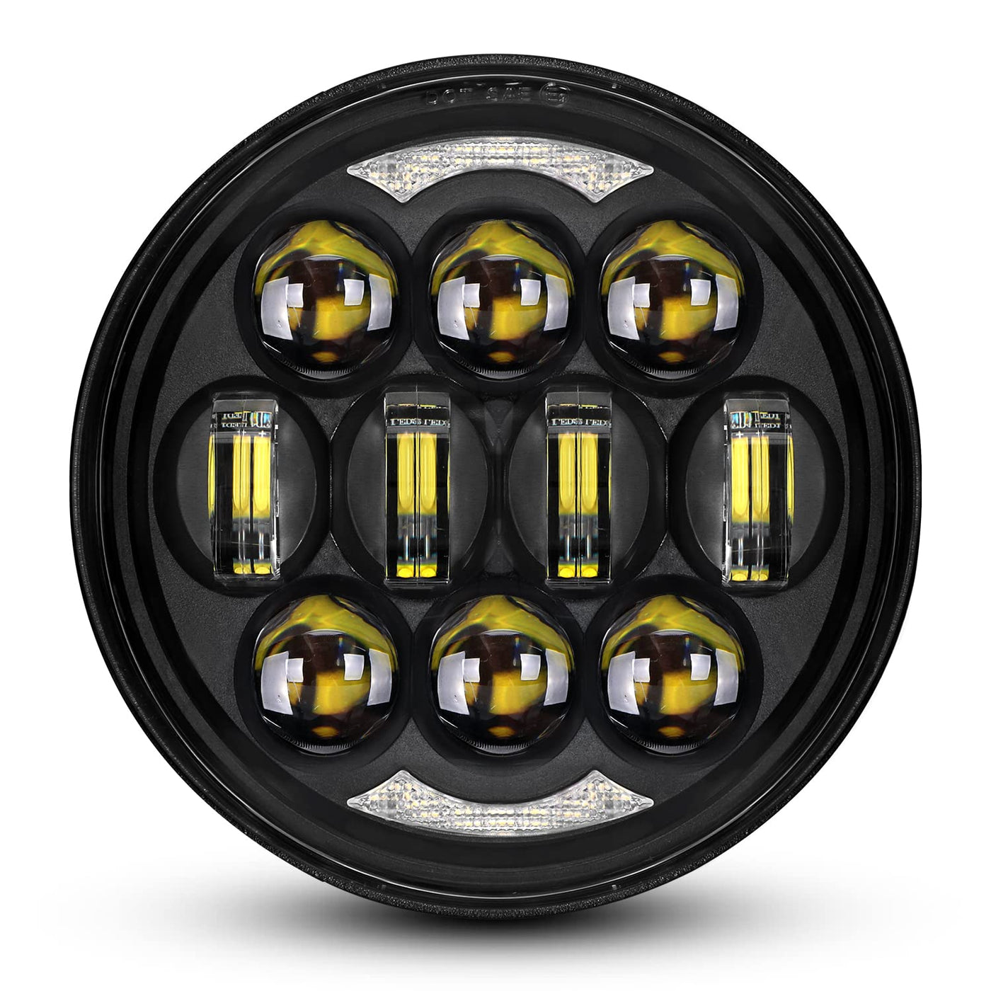 Q: How bright is the 80W LED headlight compared to standard headlights?A: The 80W LED headlight utilizes Germany Original High-performance LED chips, producing a luminous output of 5000 lumens on high beam and 3000 lumens on low beam, making it 300% brighter than other similar 5.75-inch LED headlights on the market.