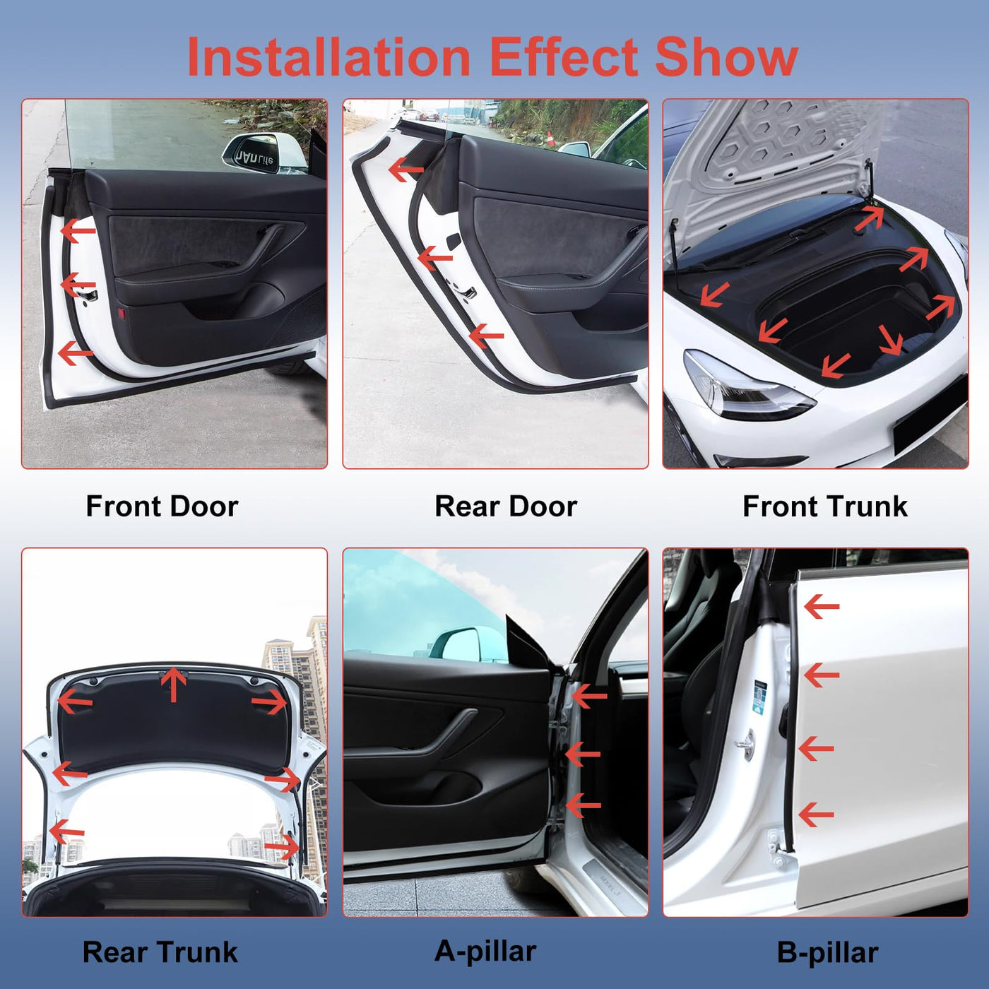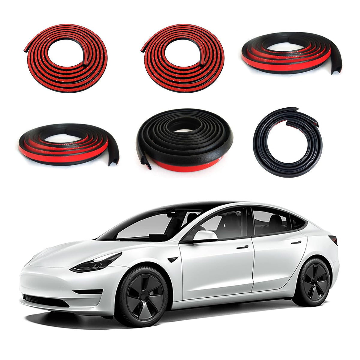 1. ?Material?Car seal strip is durable rubber and self-Adhesive, non-toxic, thick and flexible, plyable to hold up to compression. 2. ?Durable?Our car weather stripping has good flexibility and compressive deformation resistance, no cracks or deformation in long-term use. Remove the weatherstripping without leaving sticky residue and damaging the original paintwork. 3.?Increased Airtightness?Car door rubber strip can effectively prevent dust and rain into your car, to avoid your car interior being dirty, can also reduce the noise in the process of driving, keep the car quiet, for you and your family to provide a comfortable driving experience; It's also a nice way to protect your doors and windows 4.?Easy Installation?1. Use cloth to clean the place, make sure the surface is clean and level, if the surface is not smooth enough, the adhesive is required to increase the viscosity. 2. remove the red adhesive film, press it onto the car window edge, then cut the strip. 3. Don't let it get water in 3 days. In winter, the temperature drops below 50 degrees Fahrenheit , you can use a hair dryer and add some glue to adhere more firmly. 5.?Package included?Front trunk seal x 1, A-pillar seal x 1, Front door seal x 2, B-pillar seal x 1, Rear door seal x 2, Rear trunk seal x 1, User manual x 1. Our seals are designed specifically for the Tesla model 3, with different types of seals for each part of the model 3.