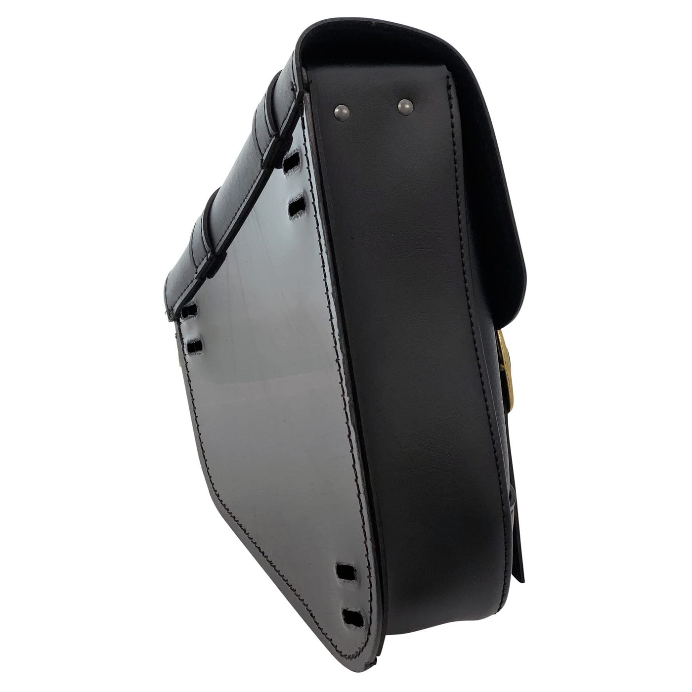 Made In Wisconsin, Usa! This Vintage, Minimalist, Black Synthetic Leather Swingarm Bag Mounts Easily To Your Motorcycle With Three Leather Straps. The Back Of The Bag Is A Rigid Abs Plastic To Help The Bag Keep Its Shape. Includes Clear Vinyl Film To Protect Your Swingarm Paint. Intended To Be Mounted On The Left Side Of The Motorcycle. Fits Bikes With Dual Shocks, With Bag, Mounted On The Left Side. This Bag Will Fit Most Custom Hardtail Bikes If Mounted On The Right Side.