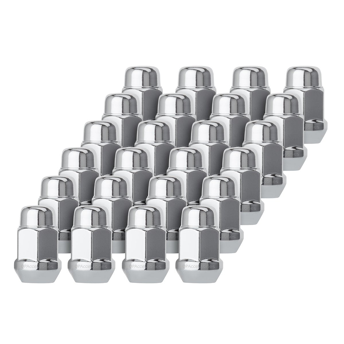 Q: How many lug nuts are included in a set?A: Each set includes 24 lug nuts, providing you with enough nuts to secure all four wheels of your vehicle.