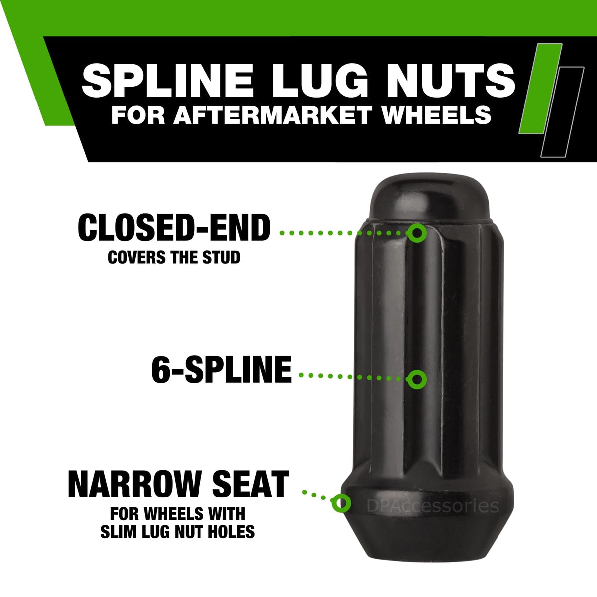 Dpaccessories Black M14X1.50 Lug Nuts For Aftermarket Wheels - Closed End Duplex Xl Spline Tuner - 51Mm (2 '') Tall - Set Of 24
