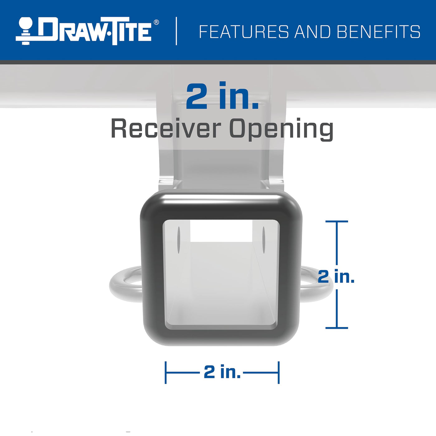 Draw-Tite Class 3 Trailer Hitches are the perfect mix of style and stability for those times when youre working on a home project or heading out on an adventure. This Draw-Tite Class 3 receiver hitch is rated for up to 4,500 lbs. gross trailer weight (GTW) and up to 675 lbs. tongue weight (TW). No weight distribution kits can be used on this specific trailer hitch. Each Draw-Tite trailer hitch tow package is designed to provide top towing performance, with solid-all-welded construction and a black powder coat finish to resist rust and corrosion. The Class 3 trailer hitch has a square 2-inch receiver tube opening, allowing you to attach accessories like a bike rack or cargo carrier, or hook up your pop-up, boat trailer, or utility trailer. Includes all the mounting hardware needed for installation and backed by a nationwide lifetime limited warranty. Draw-Tite towing hitches are tested to exceed V-5 and SAE J684 standards. Draw-Tite: North Americas Favorite Hitch.