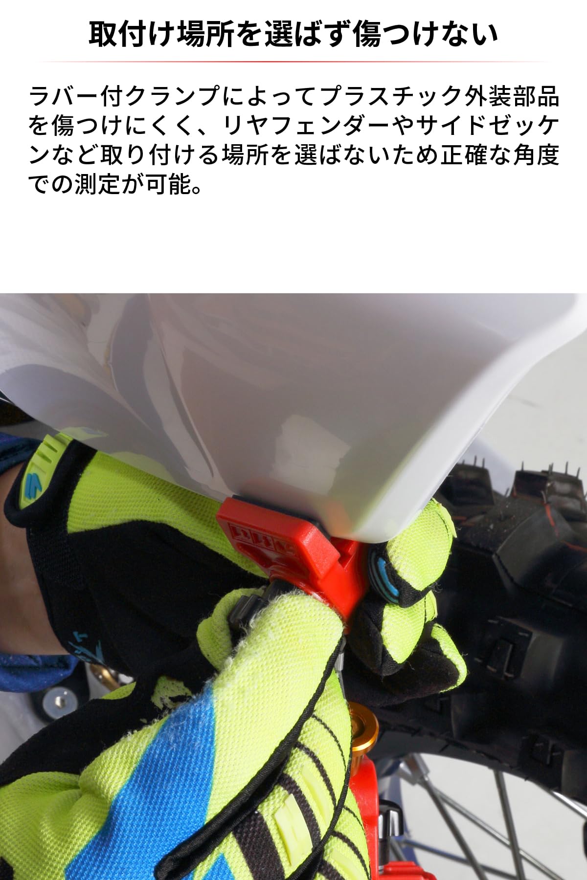 Q: How do I use the DRC - ZETA Sag Checker Tool?A: To use the DRC - ZETA Sag Checker Tool, simply clamp it onto the side panels, rear fender, or sub frames of your motorcycle. The tool allows you to measure suspension sag for both front and rear suspension easily by yourself.