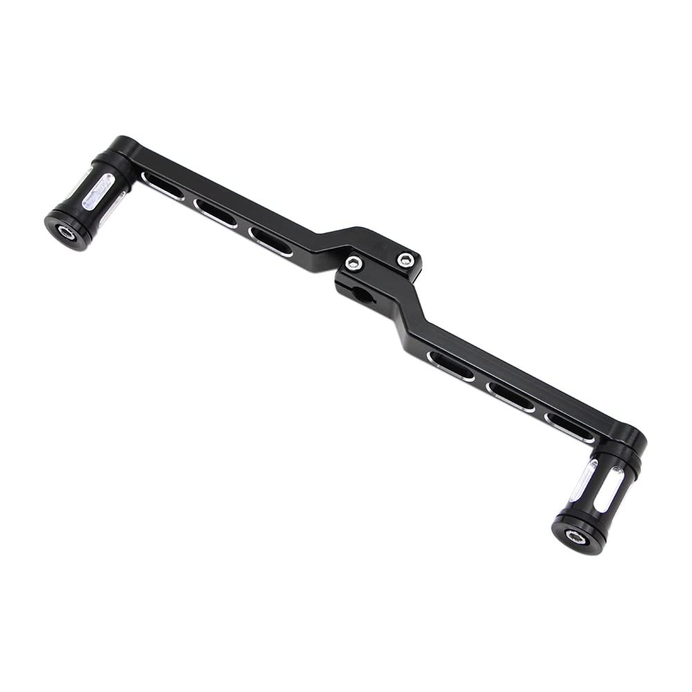 Q: What features make this gear shift lever comfortable to use?A: The slim footpeg design allows for a comfortable pivot point, while the narrow rubber bands and knurled surfaces provide a positive grip. This combination enhances comfort and control during riding.