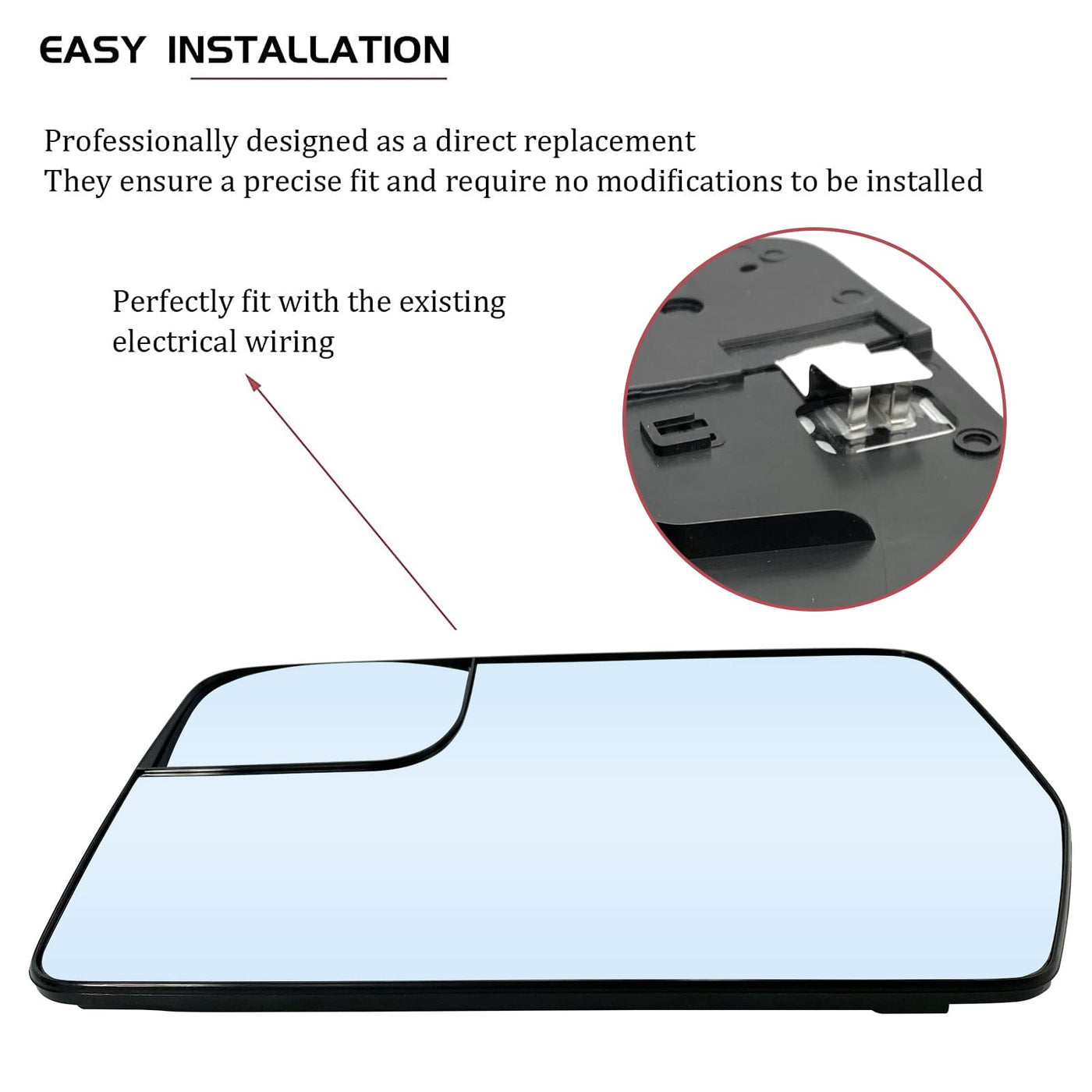 4. Easy Installation Identical Mounting Point With Factory Mirror. Perfectly Fit With The Existing Electrical Wiring. You Can Finish The Installation In A Few Minutes.