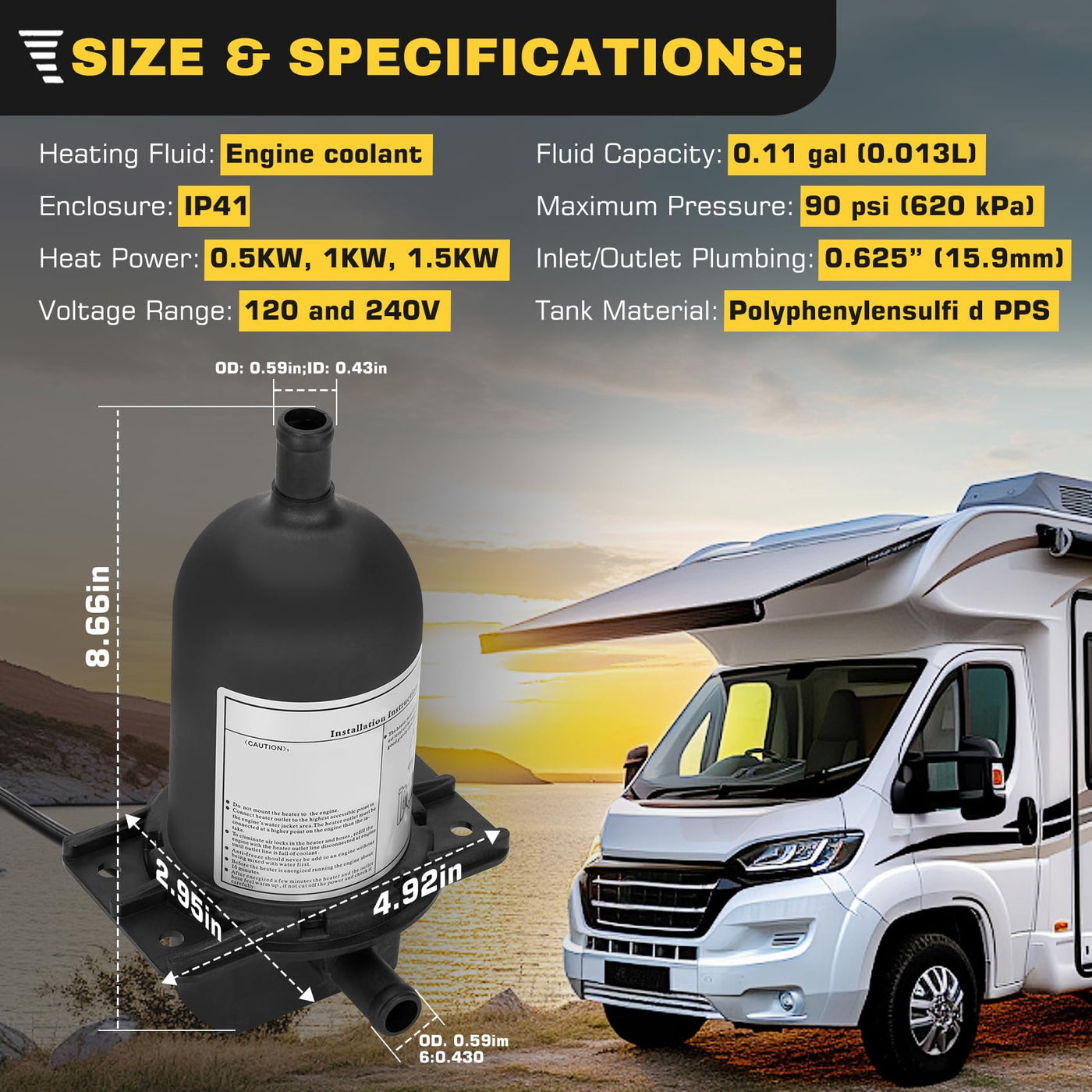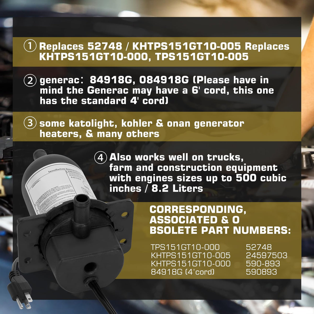 Drkerr TPS151GT10-000 Engine Block Heater compatible with Diesel & Gas engines Generator Tractor Truck Boat, Replace TPS151GT8-0