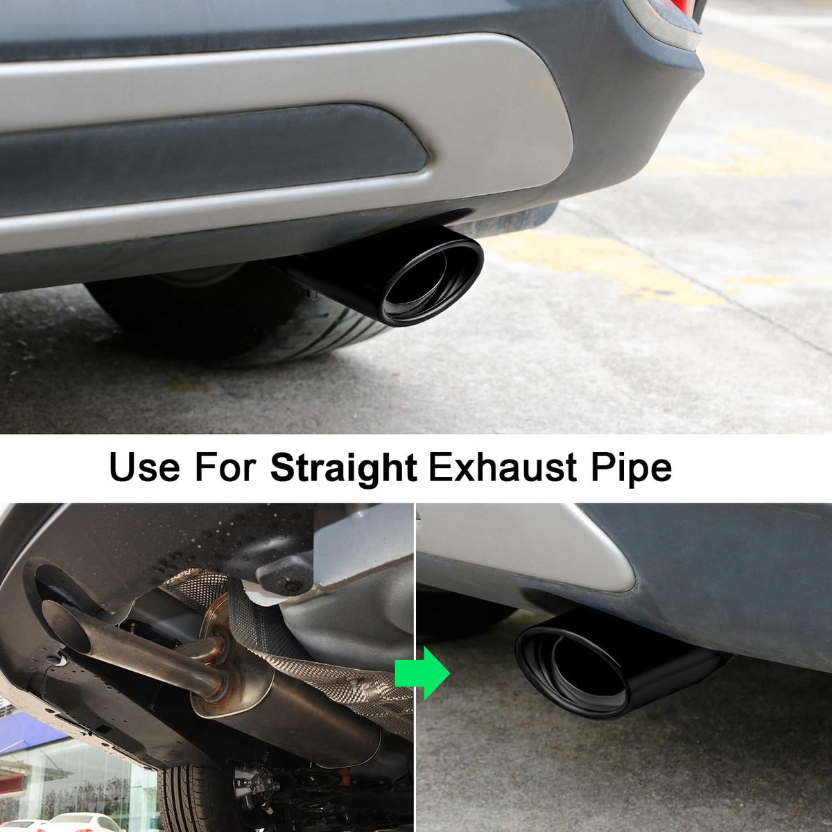 Dsycar 1.5-2.25 Inch Inlet Exhaust Tips Black, Universal Car Exhaust Pipe Modification Tail Throat Tail Pipe for 1.5'/1.75'/2'/2.25' Outside Diameter Tailpipes (Black/Straight)