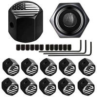 Dsycar 12 Pack Anti-Theft American Flag Tire Valve Caps, Black Tire Caps Hexagon Shape Locking Valve Stem Caps For Cars, Suvs, T
