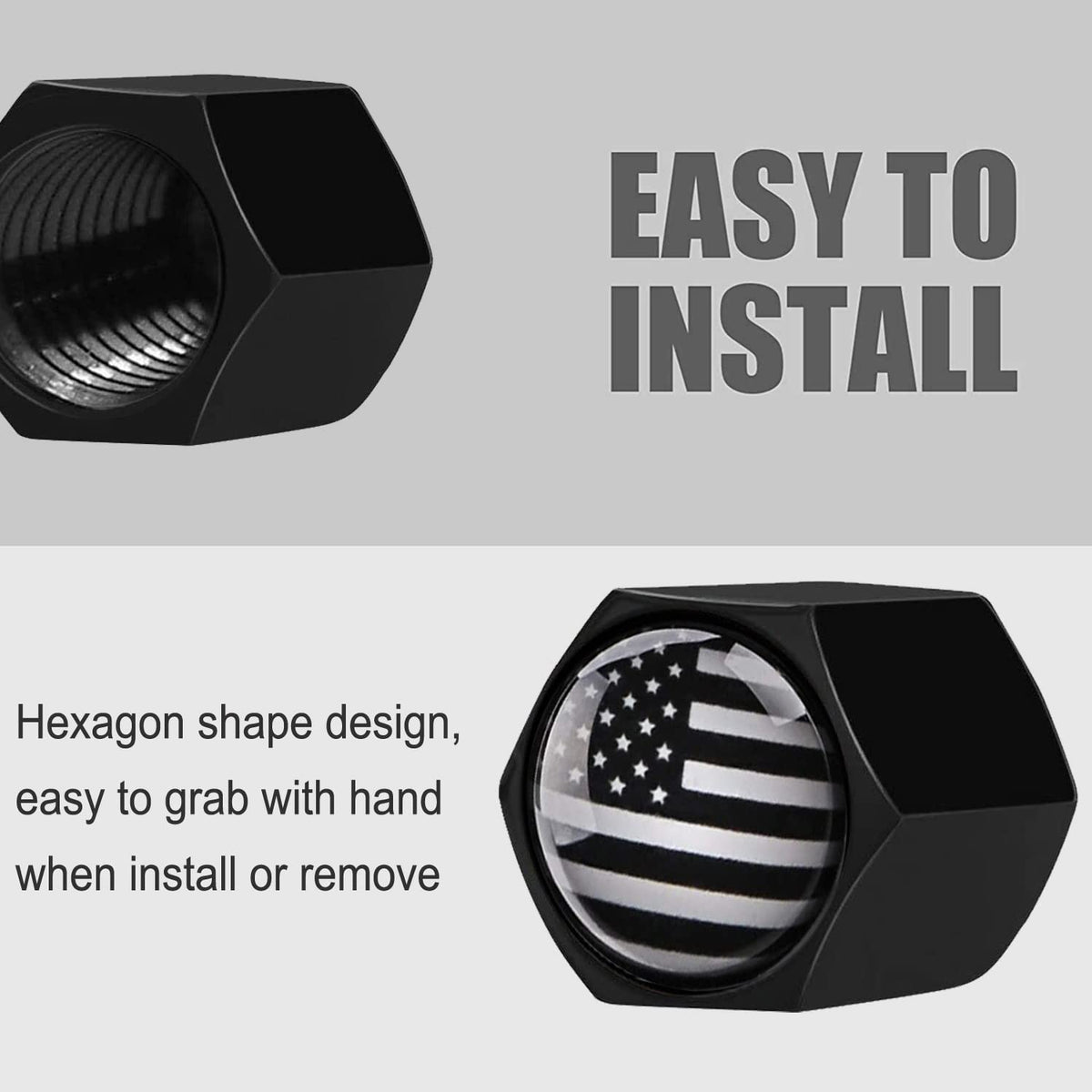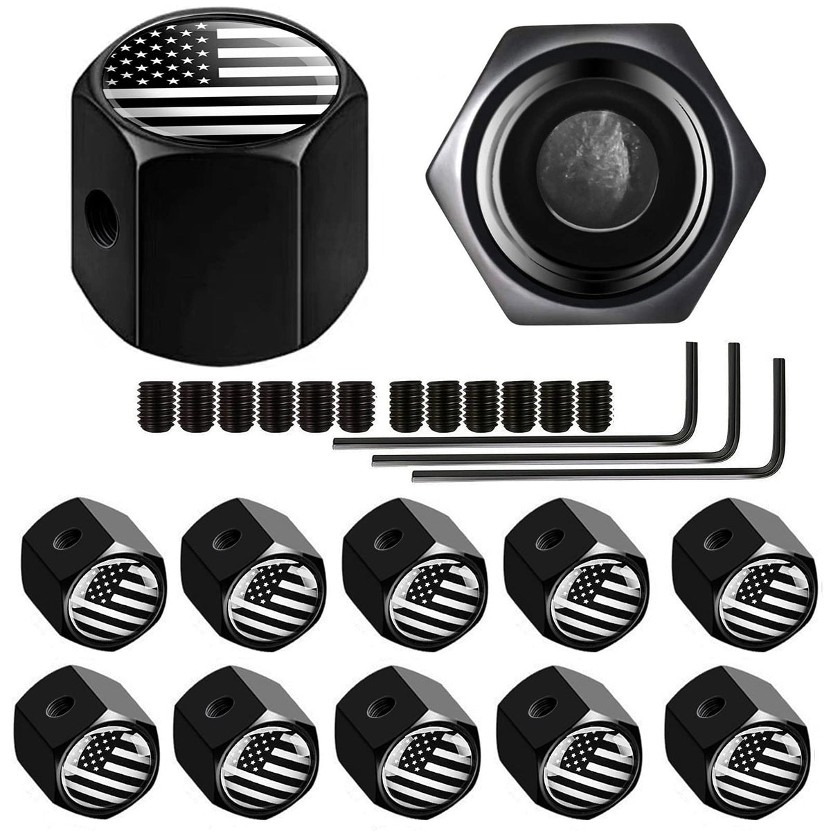 Dsycar 12 Pack Anti-Theft American Flag Tire Valve Caps, Black Tire Caps Hexagon Shape Locking Valve Stem Caps For Cars, Suvs, Trucks, Bikes, Motorcycles (Anti-Theft/Black White Usa)