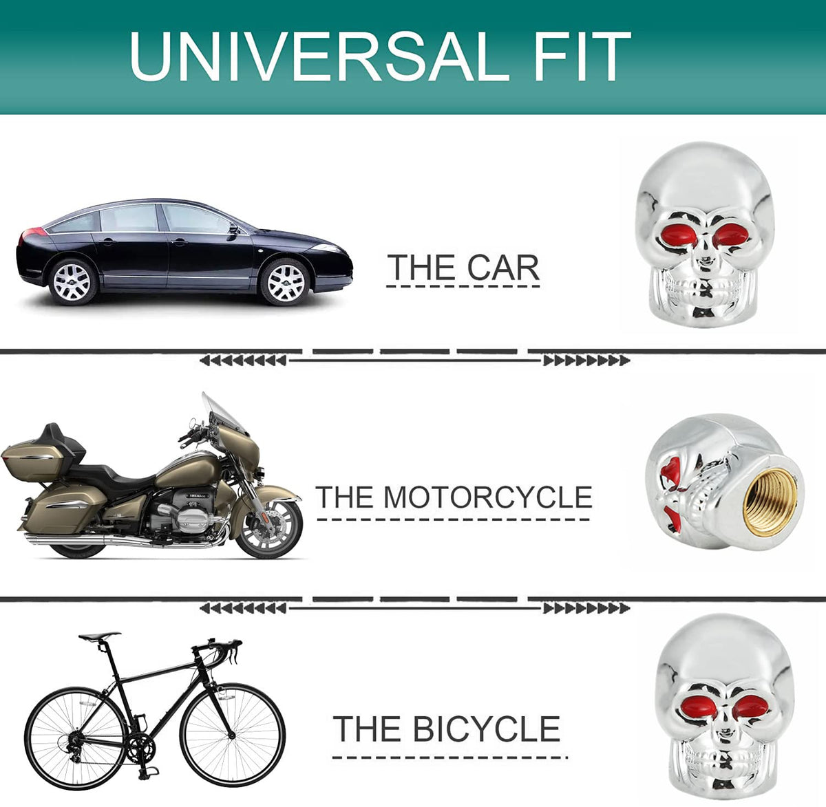 Dsycar Chrome Skull Tire Valve Caps Antirust Copper Core Air Caps Cover, Cool Valve Stem Caps For Cars, Suvs, Bike, Trucks And Motorcycles