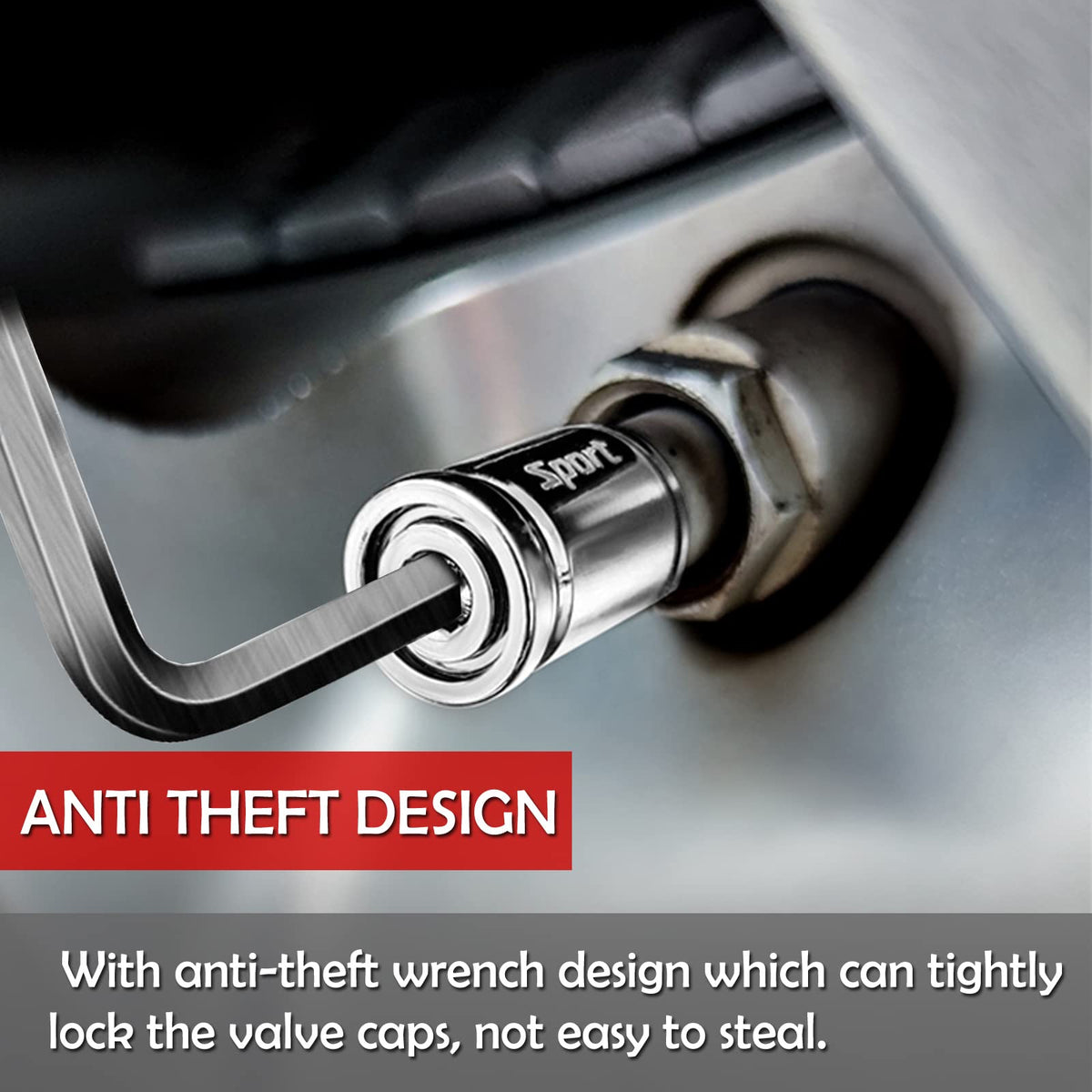 Q: How do the anti-theft features of these valve caps work?A: The Dsycar valve caps feature a locking mechanism that secures them onto the valve stem. They can only be removed with a special key provided with the purchase, making them difficult to steal.