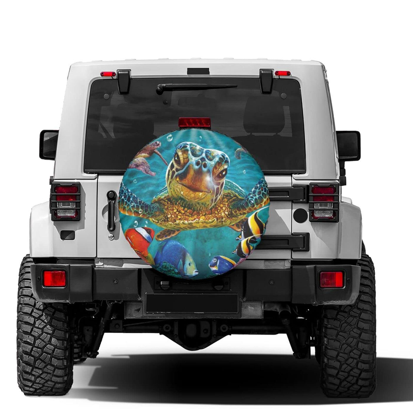 Dujiea Marine Funny Sea Turtle Fish Spare Tire Cover, Universal Wheel Tire Cover Dust-Proof Tire Protectors for Trailer Rv Van S