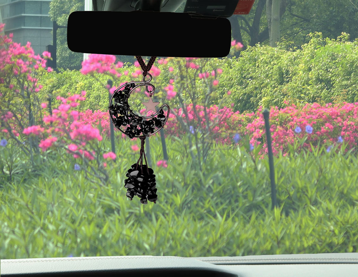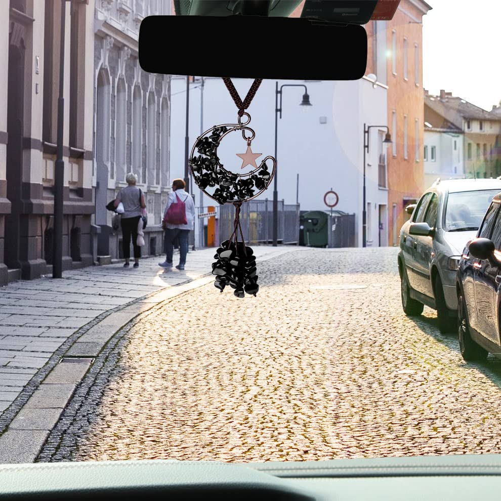 DUQgUHO Black car Accessories Obsidian crystal car Rear View Mirror Hanging Accessories crystal car Hanging Ornament Moon cute Hippie Boho car Decor Accessories for Women MenMaterial: Natural crystal quartz stonesgood Luck Healing crystal 7 chakra Tree of Life Decor is for car decorations accessories, car mirror hanging accessories, wall decoration pendants, home decor, feng shui yoga meditation decor hanging ornament cute hippie boho crystals decorIf you have any questions about the car accessories you bought, Please contact us, we will provide you with professional after-sales service and solutions within 24 hours