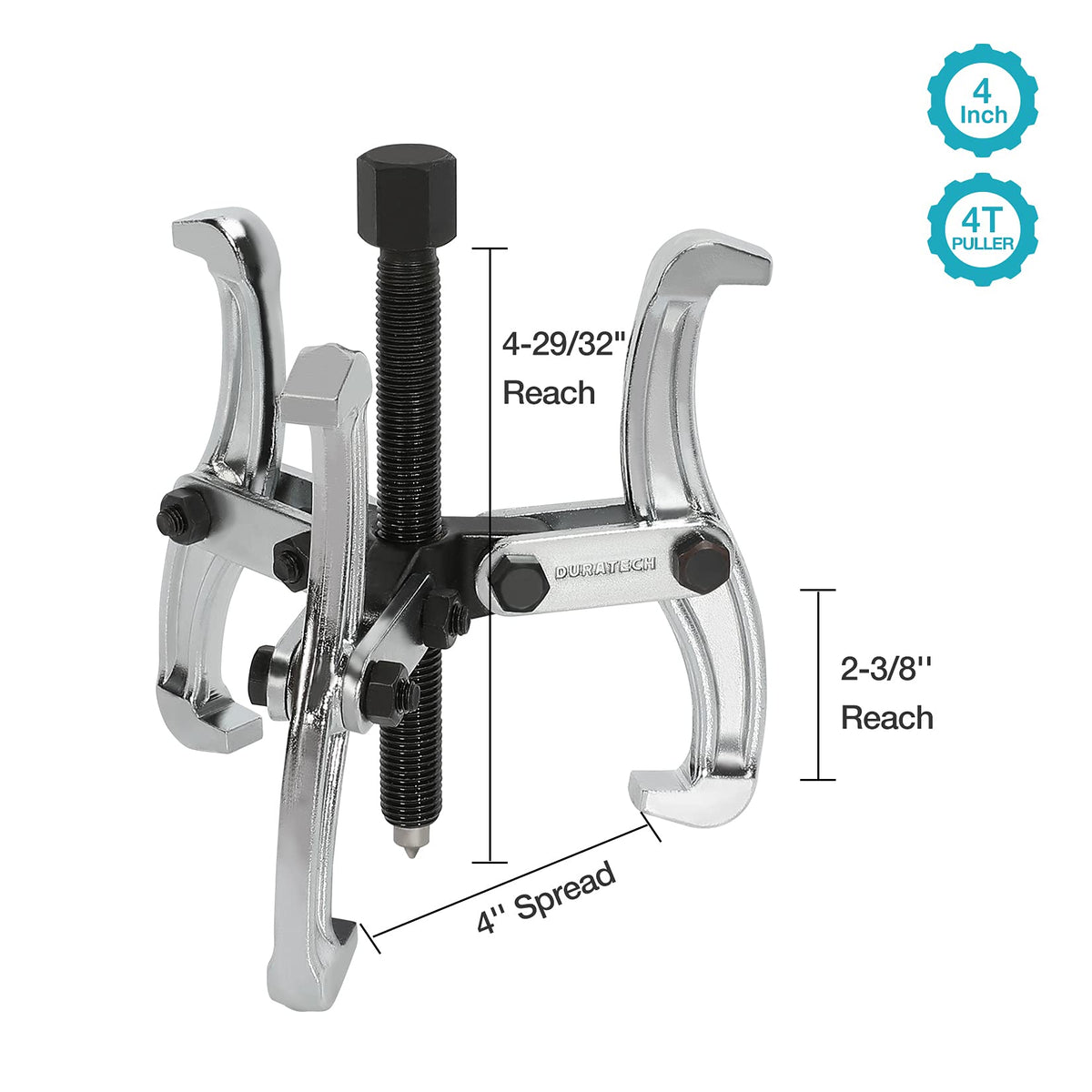 Duratech 4-Inch 3-Jaw Gear Puller, Removal Tool For Gears, Pulleys, Bearings And Flywheels, Fully Assembled, Cr-V Steel