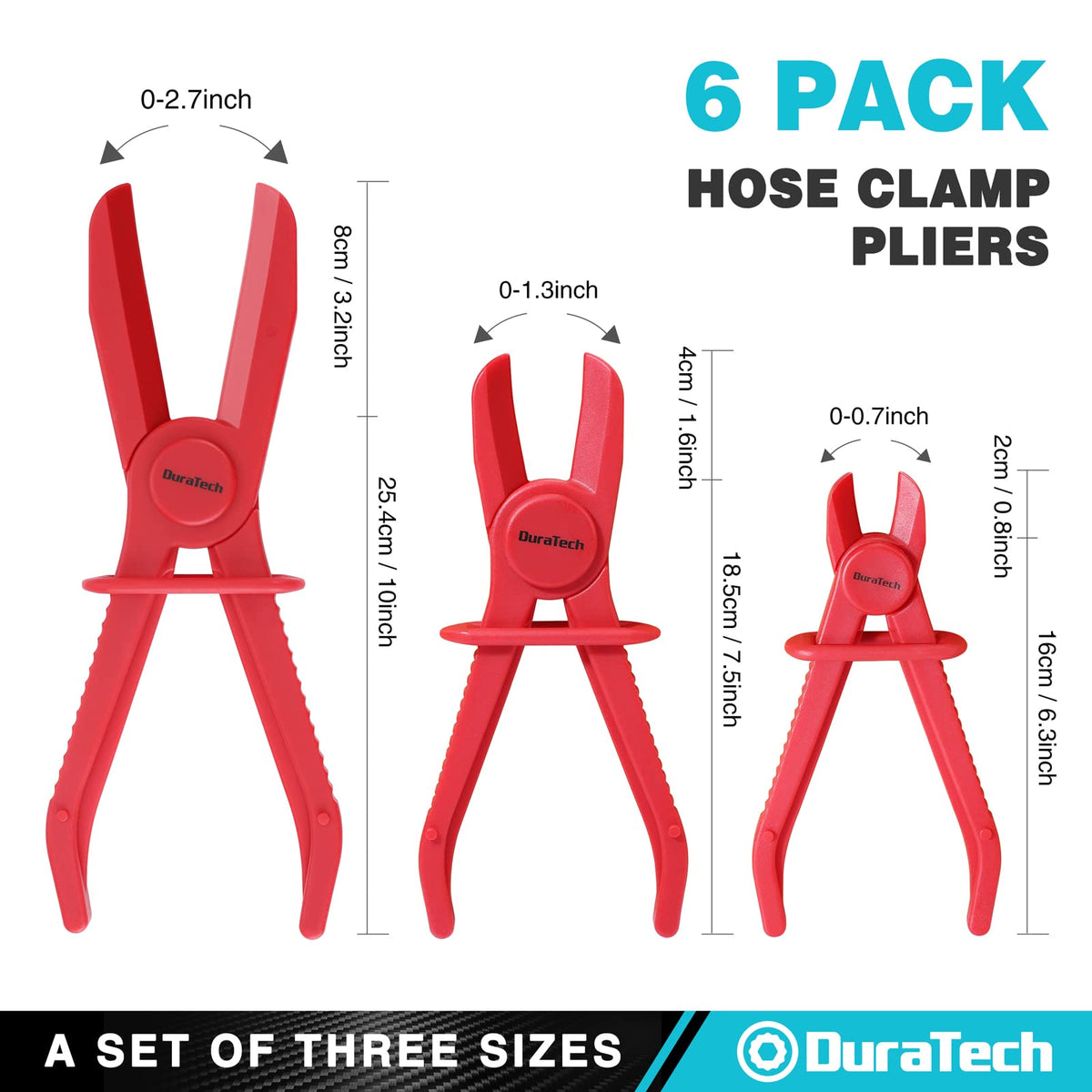 Duratech 6Pcs Hose Pinch Clamp Pliers, Pinch Pliers, Line Clamp Pliers Set For Flexible Hoses Fuel Hoses Gas Lines Brake Hoses Radiator Hoses