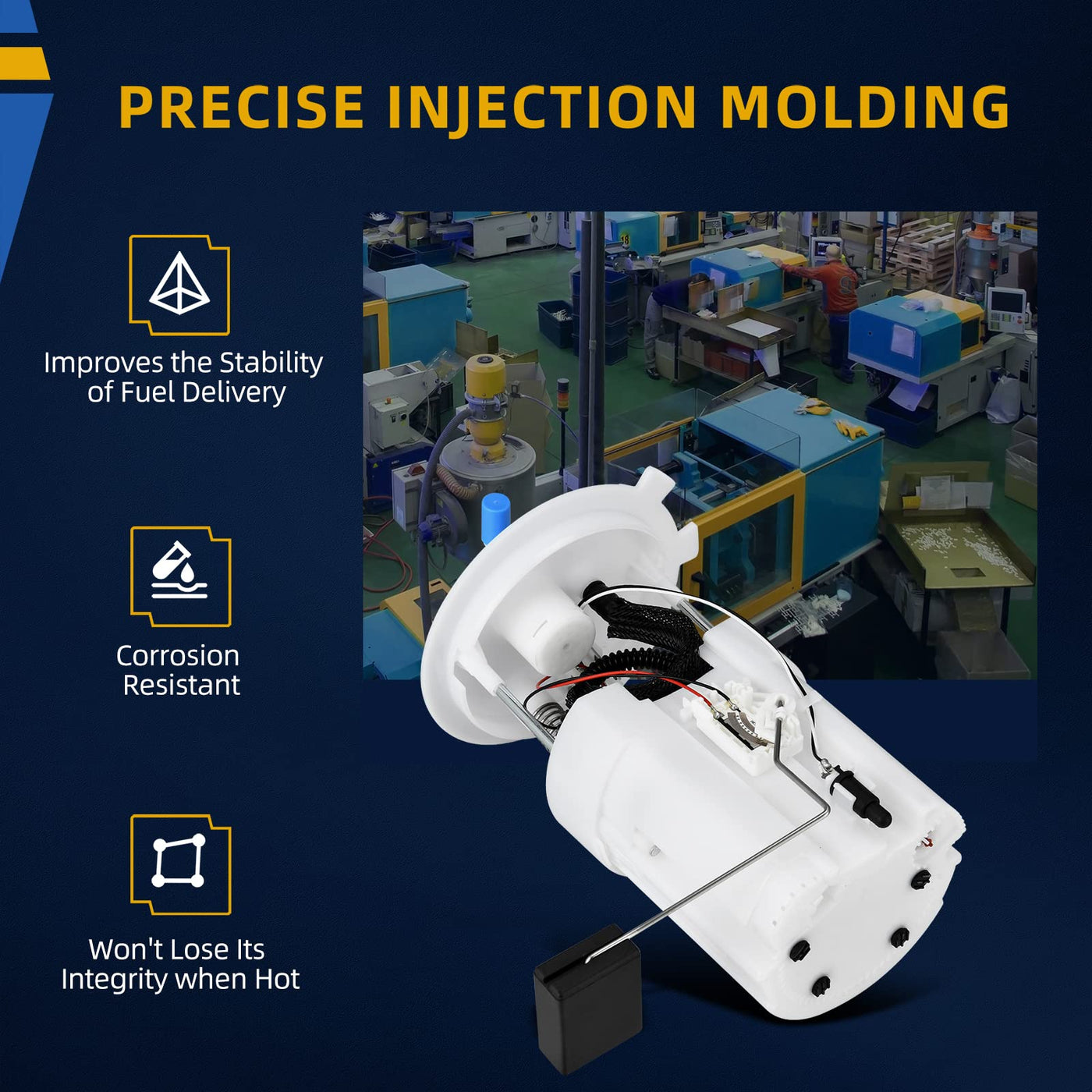 DWVO fuel pump is designed as a replacement for your worn-out fuel system part, will help optimize your vehicle’s performance and fuel efficiency | Utilizing an upgraded fourth-generation turbo pump as a motor for optimal power and fuel pressure, thereby expediting fuel atomization and speeding up startup | Adopting injection molding technology to strengthen plastic components of fuel pump assembly for improving the efficiency and stability of fuel delivery | This fuel pump is designed with strict standards in fit, form, and function. Engineered to ensure straightforward installation, it offers uncomplicated integration | Each fuel pump undergoes rigorous assessment to ensure quiet operation, unmatched performance, and long-lasting durability. Please note that professional installation is highly recommended for optimal results