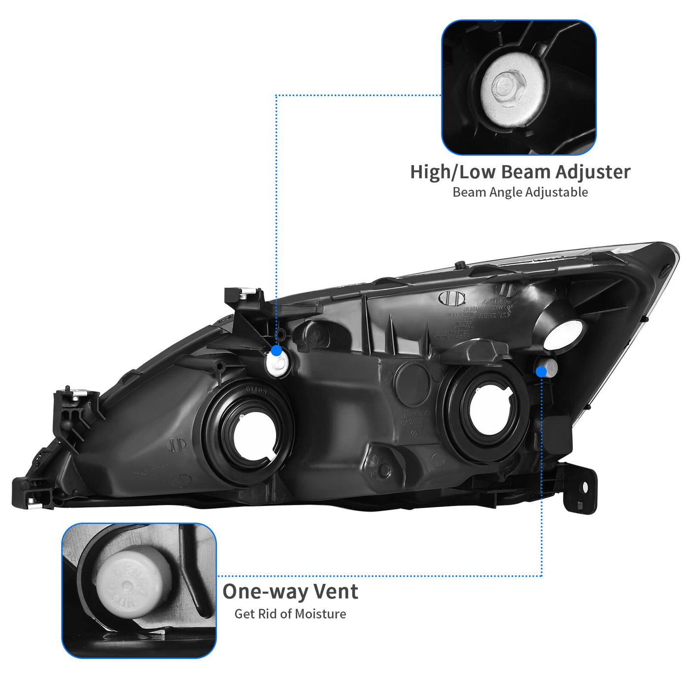 Dwvo Headlight Assembly Compatible With 03 04 05 06 07 Accord Oe Headlamp Replacement Black Housing Clear Reflector Clear Lens