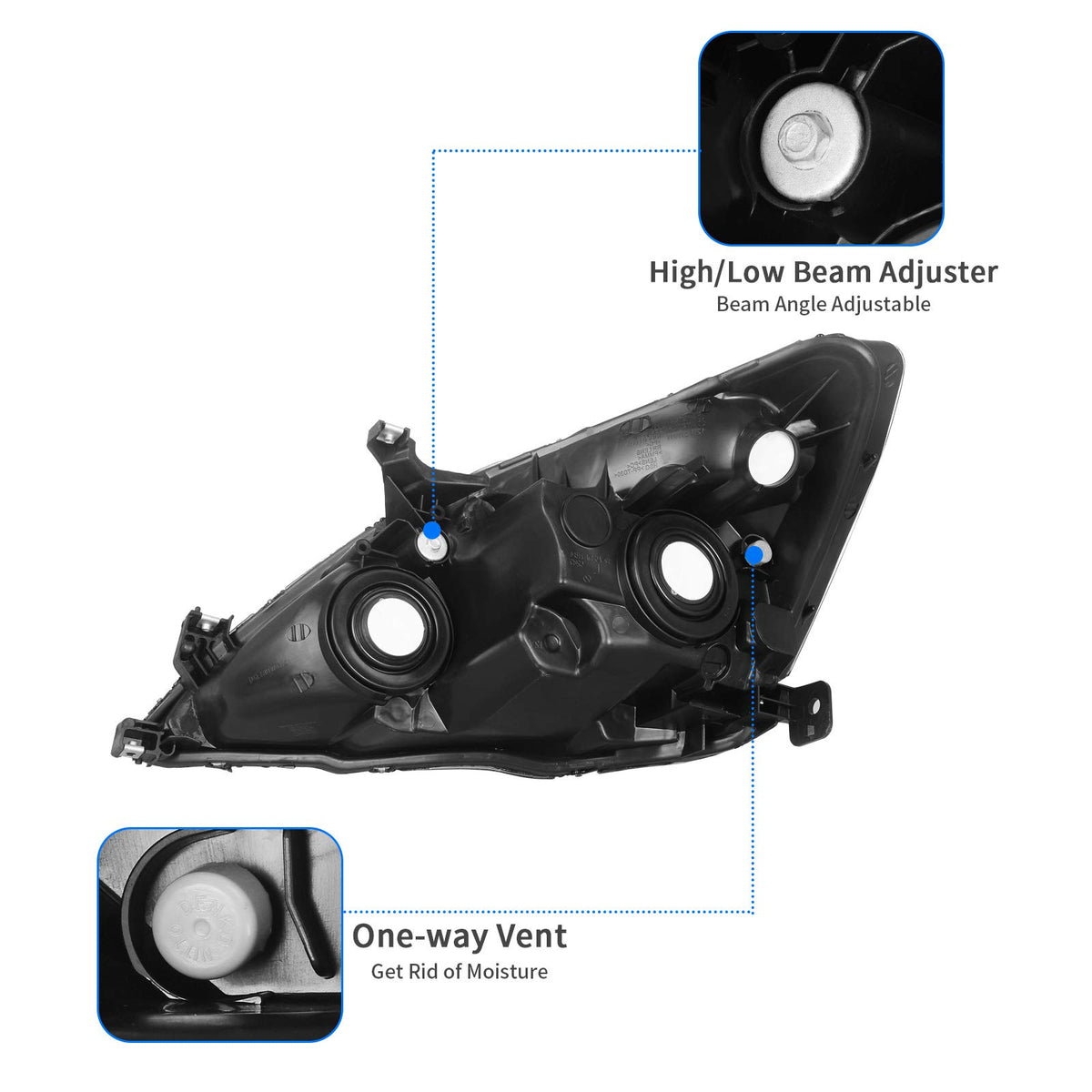 Compatibility: the headlight assemblies are compatible with 2003 2004 2005 2006 2007 Accord; high beam mode 9005 and low beam mode 9006; bulbs are not included | Improved illumination: the integrated metalized reflectors of this headlight assembly increase light distance for better visibility & driving safety in any dusky conditions | Weather-sealed: the fully sealed structure with solid silicon prevents moisture from being trapped inside the housing & provides reliable service in sorts of weather conditions such as rain, snow or dust storms | Impact-resistant & tough: constructed with durable polycarbonate lenses that give great protection against the abuse of road debris & impact from branches on the trail, and the high-impact housing also better withstands shock and vibration for your off-road adventures | Direct replacement: professional Installation would be highly recommended; come as a pair, including Driver (Left) & Passenger (Right) side